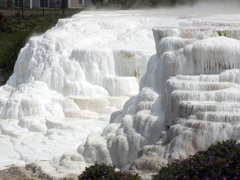Лечебная гидрокарбонатная вода пробивается из глубины 410 м, имеет температуру 68 градусов. Она настолько насыщена минеральными солями, что постепенно намывает новыми причудливыми узорами высокий соляной холм. Кстати, такой холм единственный в Европе. Во всём мире известно ещё два таких геологических образования: в турецком Памуккале и в национальном парке Йосемит, в США.