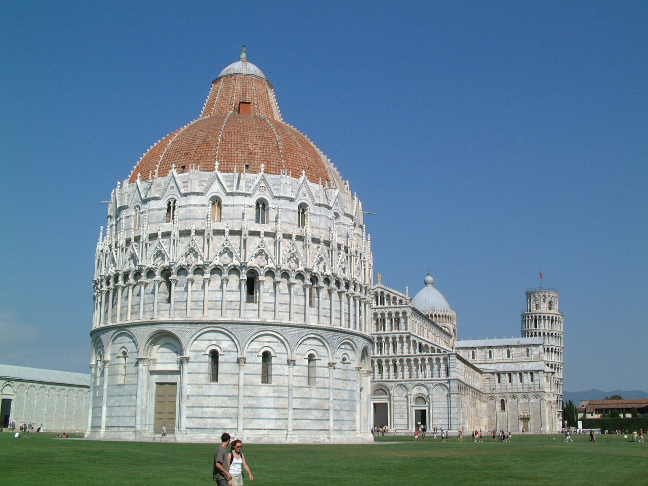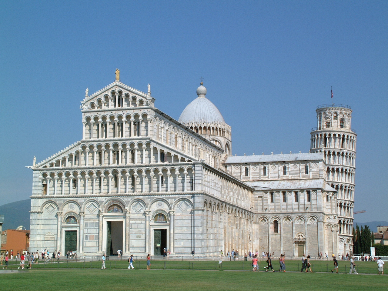 Привлекает внимание своими архитектурными формами и внушительными размерами Беломраморный Главный собор XI века, построенный в виде креста. Сейчас в храме можно полюбоваться кафедрой и другими работами известного итальянского скульптора и архитектора Джованни Пизано. Так же в соборе можно увидеть и бронзовую лампу Галилея, представляющую собой огромную люстру на 49-метровом жестком подвесе. Именно благодаря этой люстре великий Галилей открыл закон изохронности колебаний маятника, что дало рождение маятниковым часам.