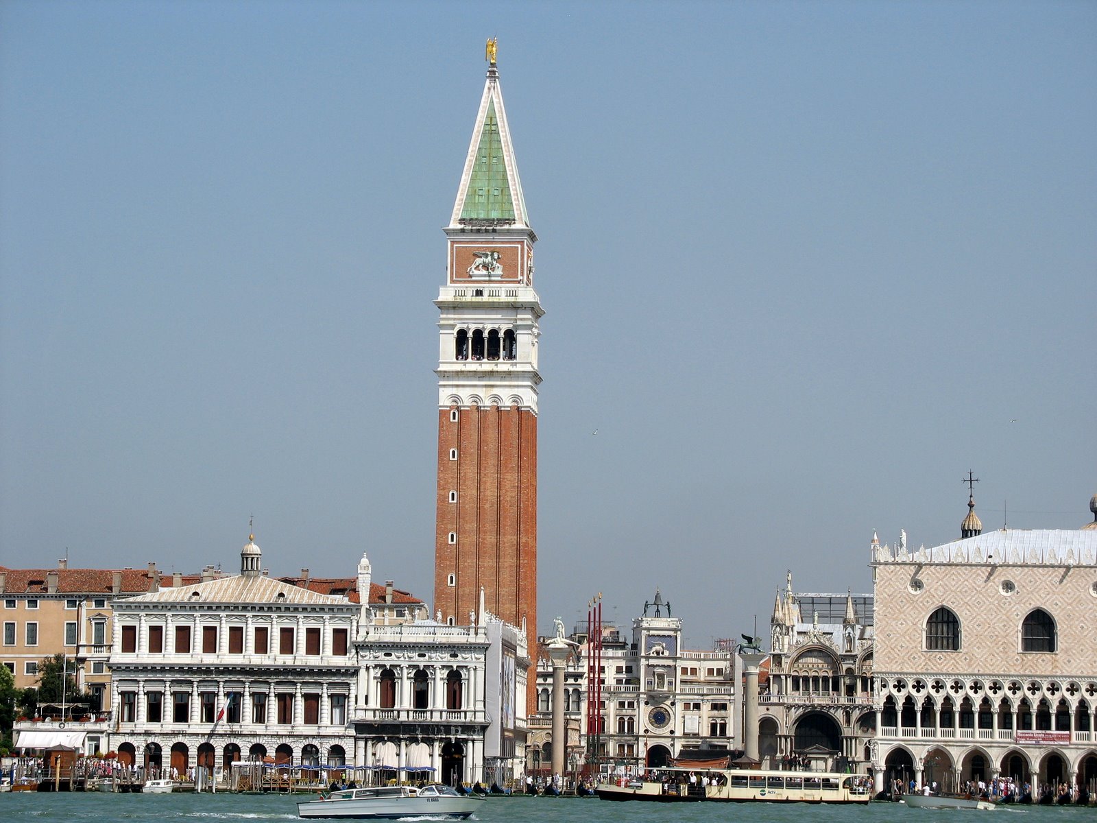 Система водных каналов густо переплетена пешеходными дорожками, которые приведут вас на самую большую в городе площадь Святого Марка, где расположен собор Сан-Марко. Неподалеку от него находится башня Торре дель Оролоджо. Построенная в XV веке она увенчана сложным часовым механизмом, показывающим не только время, но и зодиакальную позицию солнца и лунный цикл.
