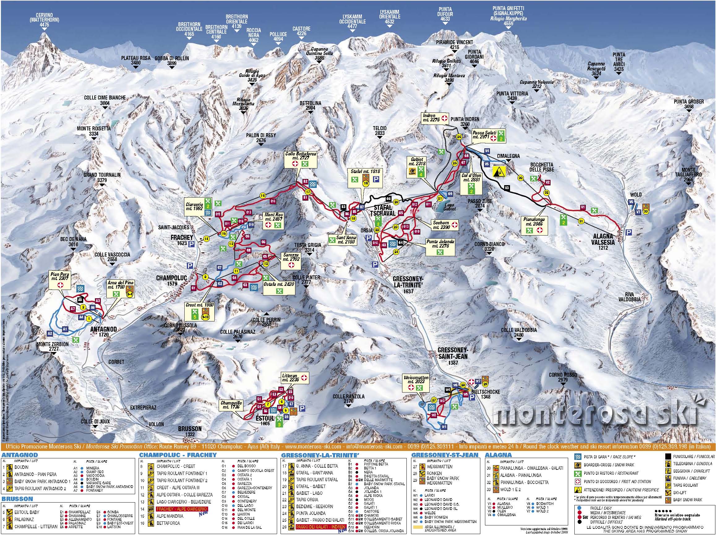 В районе Монте-Роза (Monterosa) находятся прекрасные долины: Антаньон, Шамполюк, Брюссон, Грессоней-ла-Трините и Грессоней-Сан-Джон, которые, объединенные между собой в 2005 году, превратили это место в настоящее сказочное белое королевство, состоящее не только из головокружительных спусков, но и необозримой снежной целины. В вечернее время можно заняться посещением ресторанов, баров, а также небольших магазинчиков, предлагающих широкий выбор милых сувениров и поделок ручной работы.