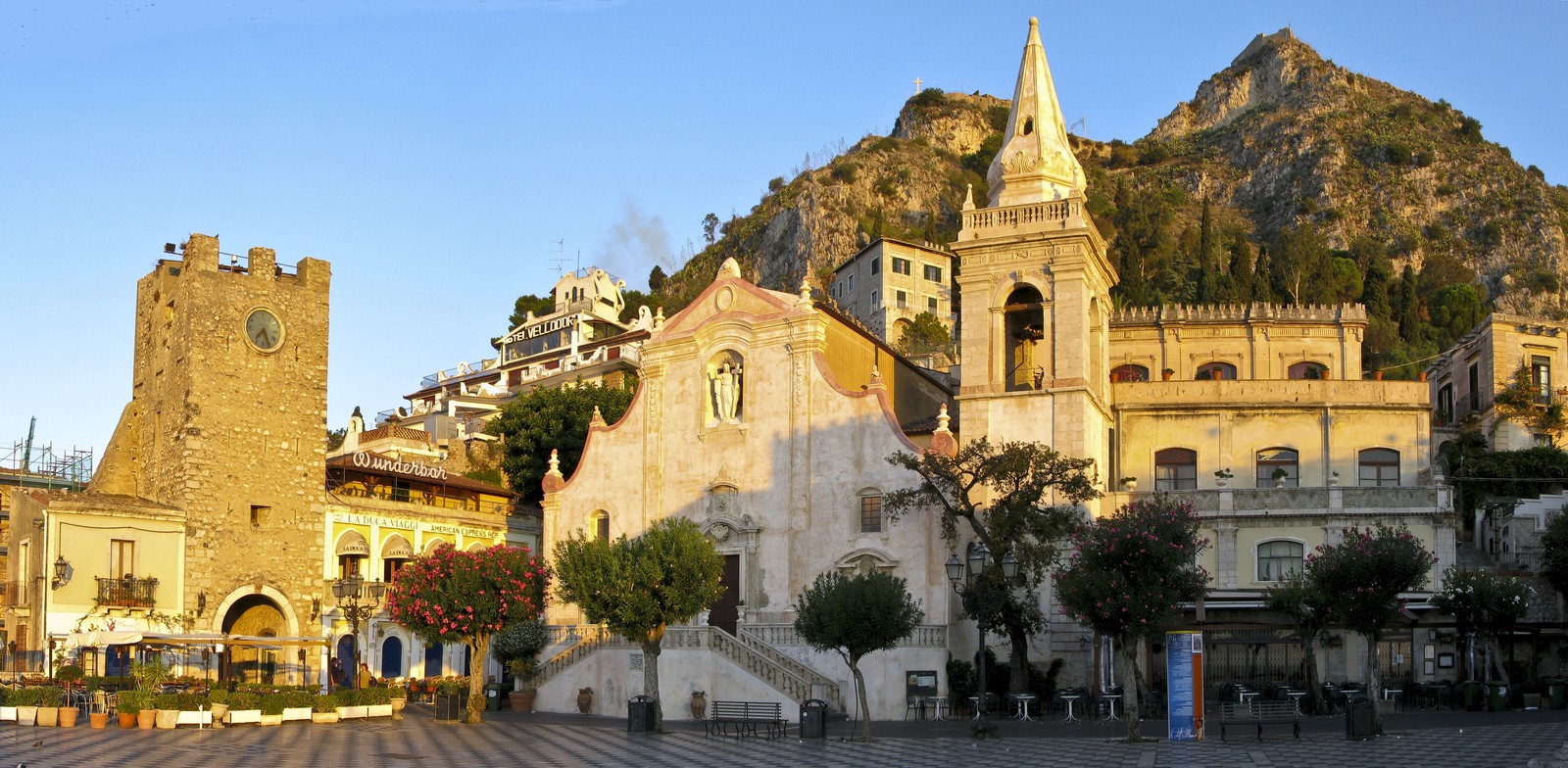 Город Таормина является самым известным курортом на побережье Сицилии, возникшим на месте бывшего греческого поселения Тавроменион. Город располагается на вершине горы Тауро, с которой открывается просто захватывающий дух вид на Ионическое море и периодически просыпающийся вулкан Этну.
