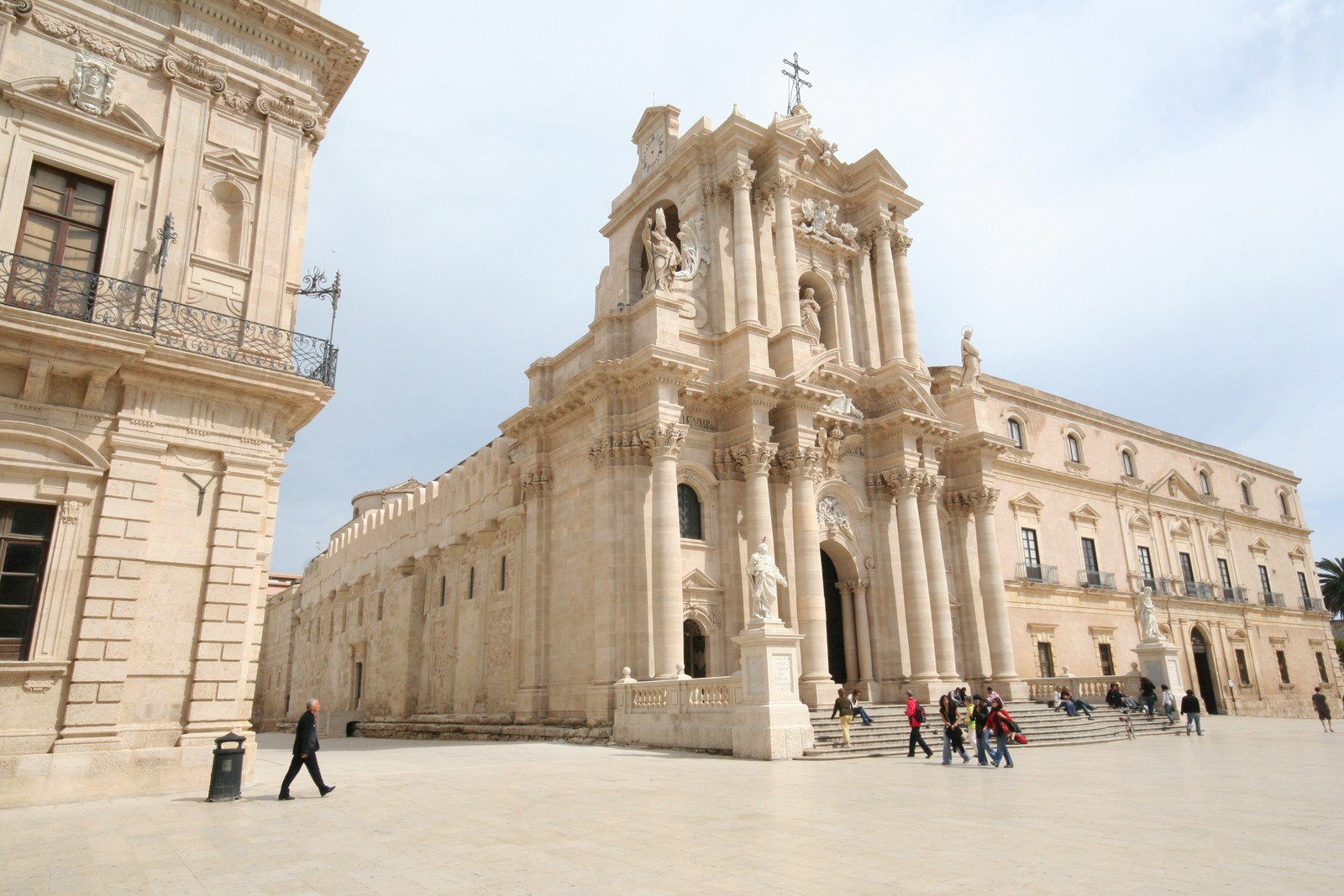 Само здание Сиракузского собора, или как его здесь называют Дуомо, было построено на базе языческого храма богини Афины, находящегося на этом месте с V века до нашей эры, а затем перестроено. Последняя реконструкция собора произошла в XVIII веке. С тех пор фасад храма украшен поразительными по красоте статуями, работы известного итальянского зодчего Марабитти.
