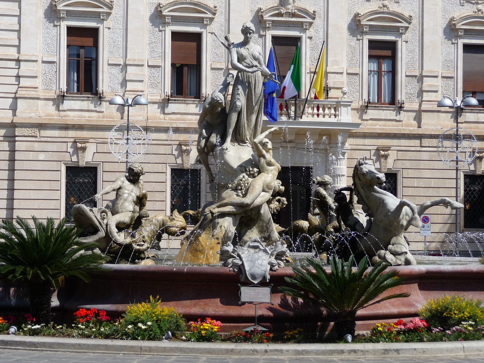 Площадь Архимеда. Память о великом земляке увековечена жителями Сиракуз в виде площади, названной именем Архимеда. Площадь, расположенная на острове Ортиджа, знаменита на весь мир своим великолепным фонтаном, работы талантливого архитектора XX века Джулио Москетти. Фонтан украшен скульптурной композицией, которая представляет богиню Артемиду-охотницу в центре в окружении русалок, нимф и лошадей.