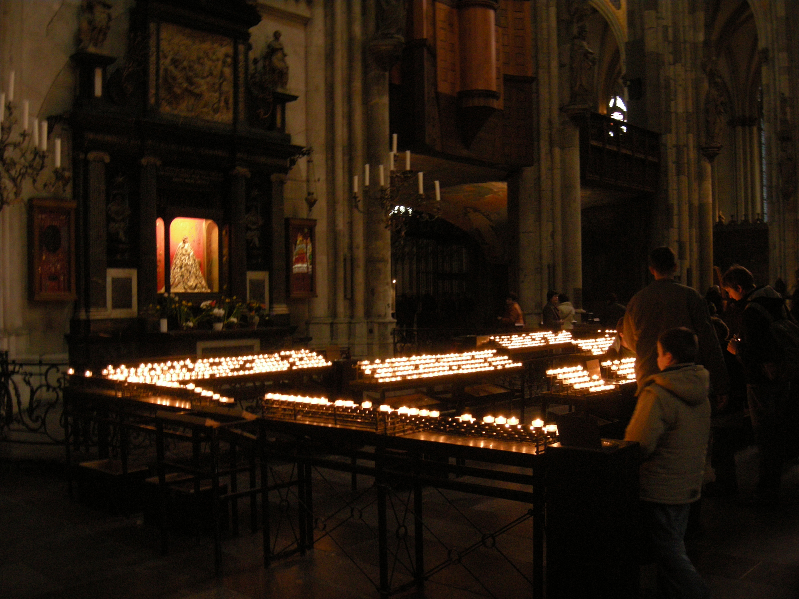 На колокольне Собора Святых Петра и Марии можно увидеть самый большой в мире действующий колокол, вес которого составляет 24 тонны, — этот колокол носит название «Петер». Этому грандиозному колоколу еще не исполнилось и ста лет – он украсил собор в 1923 году, а материалом для его изготовления являлись захваченные в 1871 пушки французов. В храме действует и средневековый колокол, отлитый в 1448 году, он занимает второе место по величине. Этот колокол до сих пор поражает чистотой звука, за которую он был назван «Претиоза» — латинское название переводится на русский язык как «Изысканная». Вес этого колокола составляет 11 тонн, и на момент отливки в середине XV столетия он являлся самым большим колоколом на территории Европы. Прогуливаясь по Кельну, колокольни храма можно увидеть не только из исторической части города – они видны даже с окраин немецкого города. А во время вечернего освещения, благодаря игре света, вид собора становится поистине завораживающим – древние камни здания словно излучают зеленоватый свет.