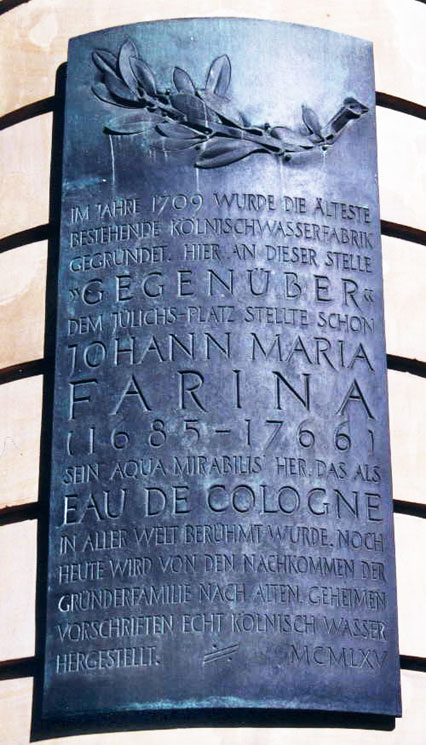 В 1685 в небольшой итальянской деревушке Санта-Мария Маджоре родился будущий знаменитый парфюмер. Когда Фарине стукнуло двадцать, он решил оставить родные края и отправится на чужбину в поисках лучшей жизни. Проскитавшись некоторое время по Европе, Фарина осел в Кельне, где начал заниматься торговлей. В своей лавке он продавал различные предметы обихода, в число которых входили и духи. Тогда никто и не мог предположить, что в этой ничем не примечательной лавчонке будет писаться история мировой парфюмерии.