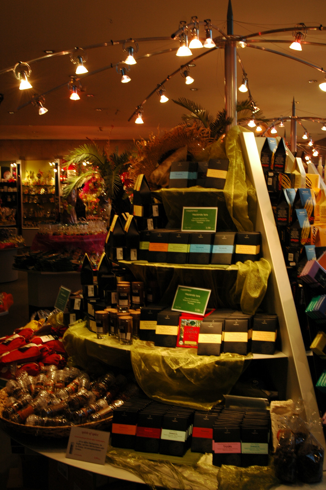 Мало кто из посетителей выходит из музея с пустыми руками, ведь на выходе расположен кондитерский магазин, мимо которого просто невозможно пройти. Разнообразие ассортимента поражает, на полках выставлены сотни наименований товара: шоколадные конфеты с различными начинками, коробки с шоколадными наборами, плитки всевозможных сортов, сиропы и ликеры, сваренные на шоколадной основе – прямо в глазах рябит от огромного количество разноцветных упаковок, оберток и этикеток.