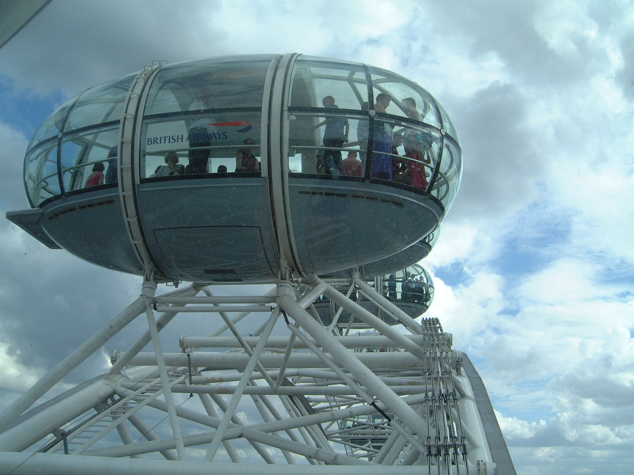… Мы медленно, почти неощутимо (26 сантиметров в секунду) поднимаемся в футуристической кабине, рассчитанной на 12-15 человек, к отметке 135 метров – это высота 45 этажа! Колесо весом 1700 тонн – самое большое в мире – в течение получаса дарит нам, пожалуй, самые незабываемые впечатления от визита в Лондон.