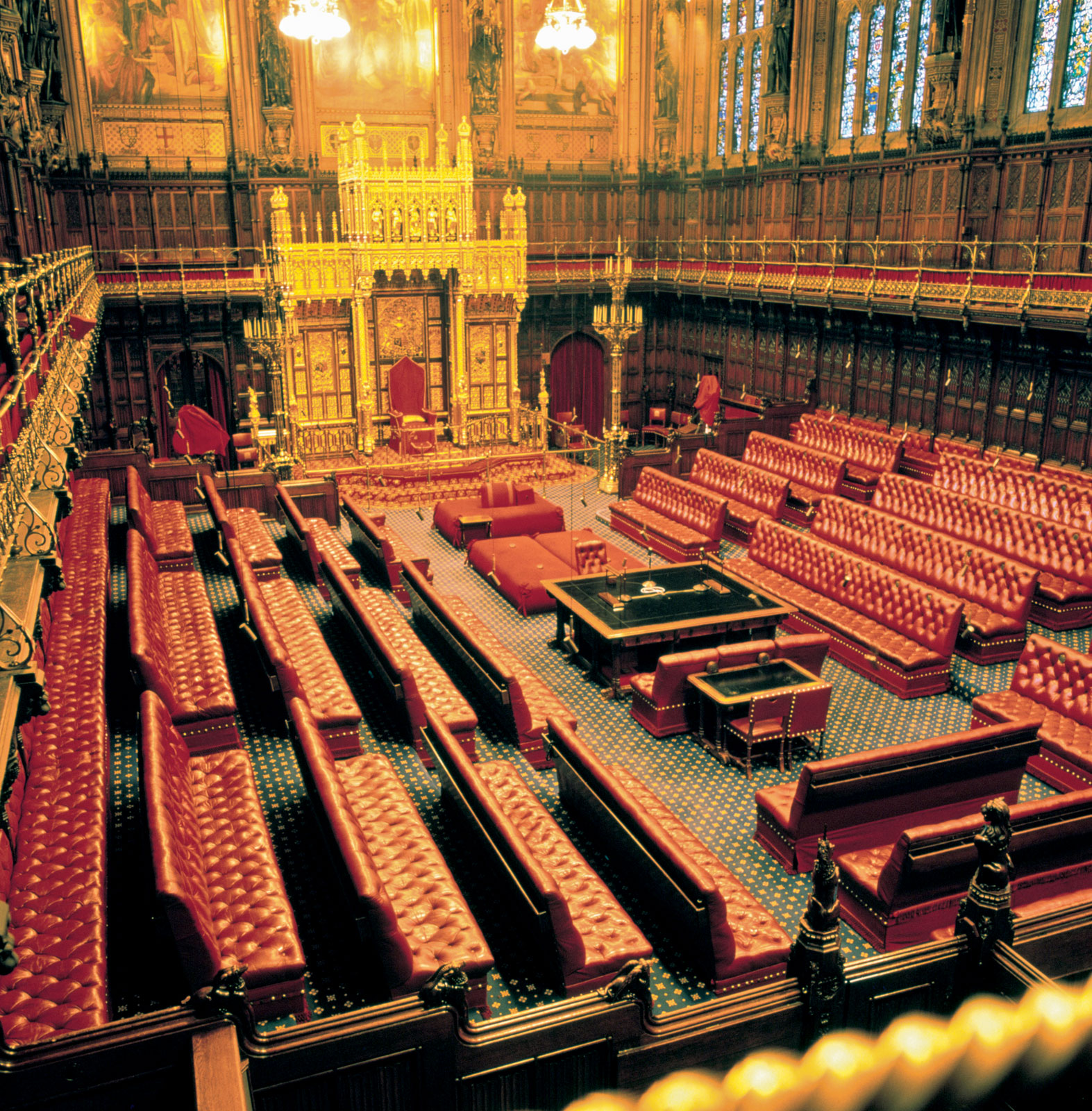 Палата Лордов – наиболее богато украшенное помещение Парламента. Множество фресок и картин, резьба по камню и дереву – долгие годы, превращающиеся в века, лучшие мастера творили, чтобы заполнить этот зал.