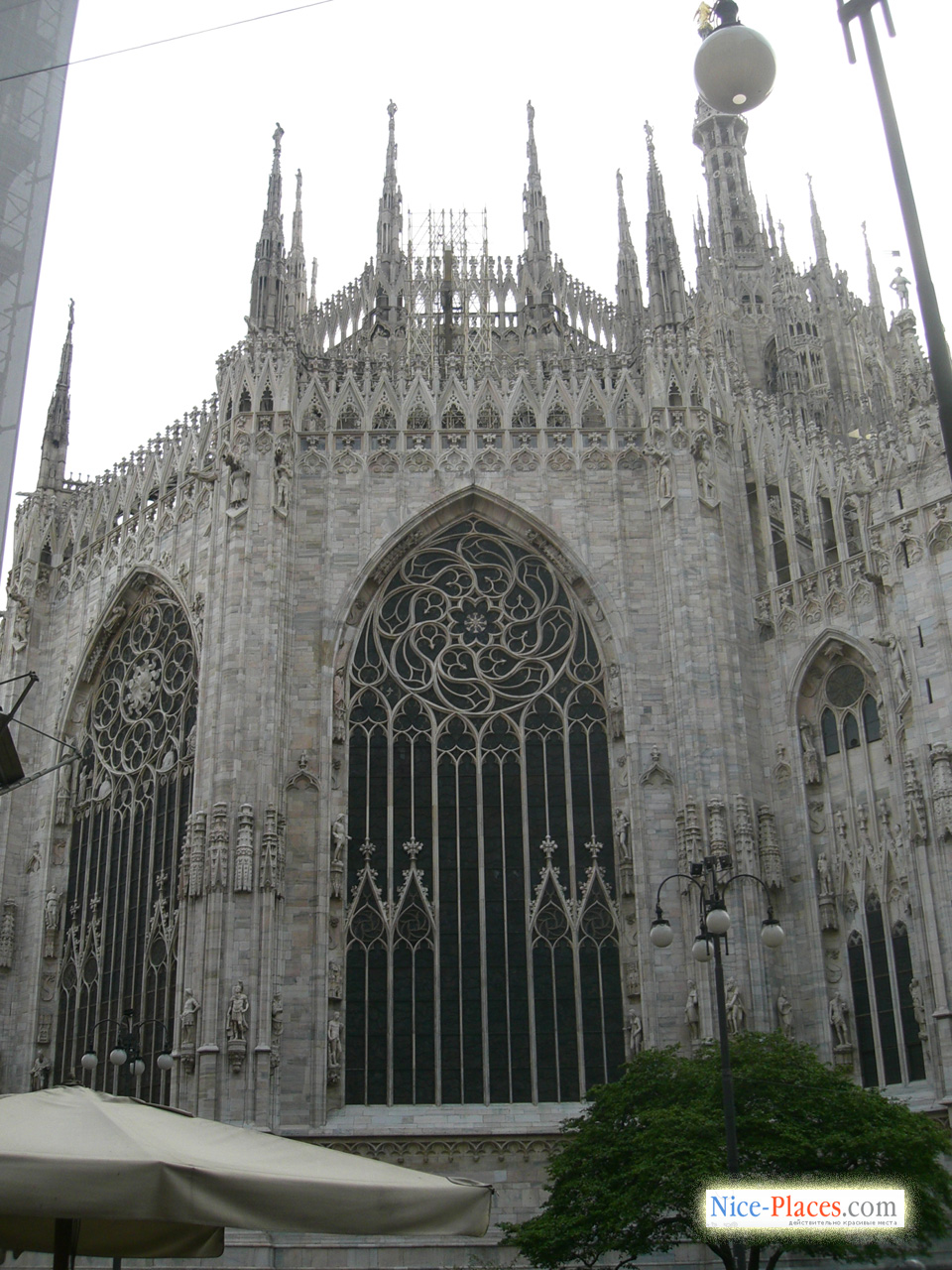 Свой нынешний облик площадь Дуомо обрела не так уж давно: в 1865 г. она была полностью перестроена, автором проекта реконструкции стал архитектор Д.Менгони. Здание собора занимает западный край площади. В любое время года Дуомо впечатляет своей возвышенной торжественностью, но осенью вид храма поражает более всего, когда прохладным утром всю площадь обволакивает знаменитый миланский туман, а из этого молока выглядывают только шпили величественного сооружения. В эти мгновения время как будто останавливается: не слышно шума крыльев непоседливых голубей, не видно торговцев и туристов, в густом тумане тонут очертания всех близлежащих предметов. Вы на некоторое время выпадаете из реальности, трепетно благоговея перед величием этого прекрасного архитектурного шедевра.