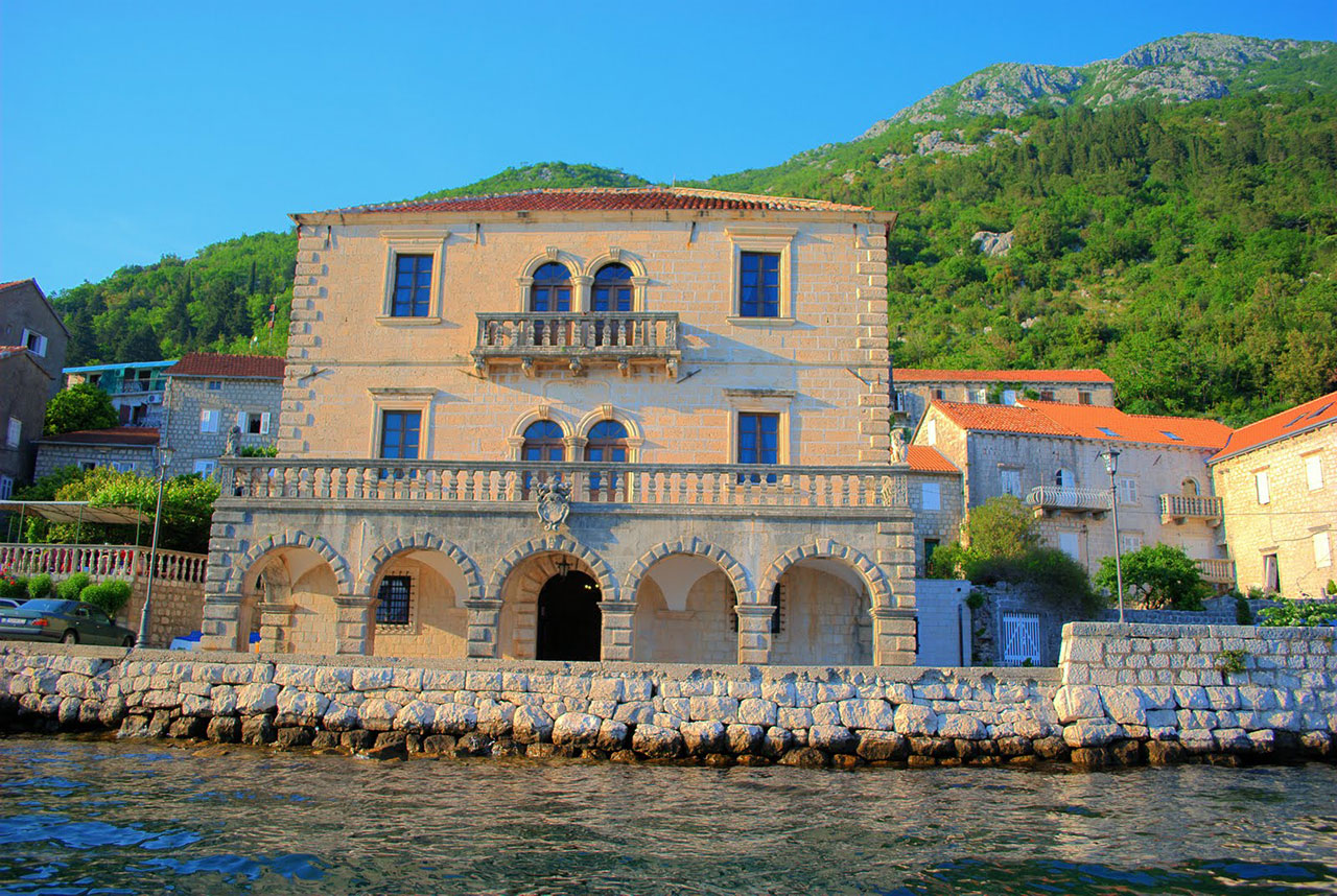 Еще один знаменитый местный дворец находится на северо-западе города. Жители Пераста называют его Бискупией, что в переводе обозначает «Жилье епископа». Несколько представителей рода Змайевичей, которому принадлежал особняк, возведенный в 1664 году, дослужились до епископского титула. Наверное, этот факт объясняет наличие на территории дворцового комплекса часовни с выразительной колокольней. И церквушка, впоследствии ставшая мавзолеем, и сам дворец украшены стилизованным изображением змея, который является эмблемой Змайевичей.