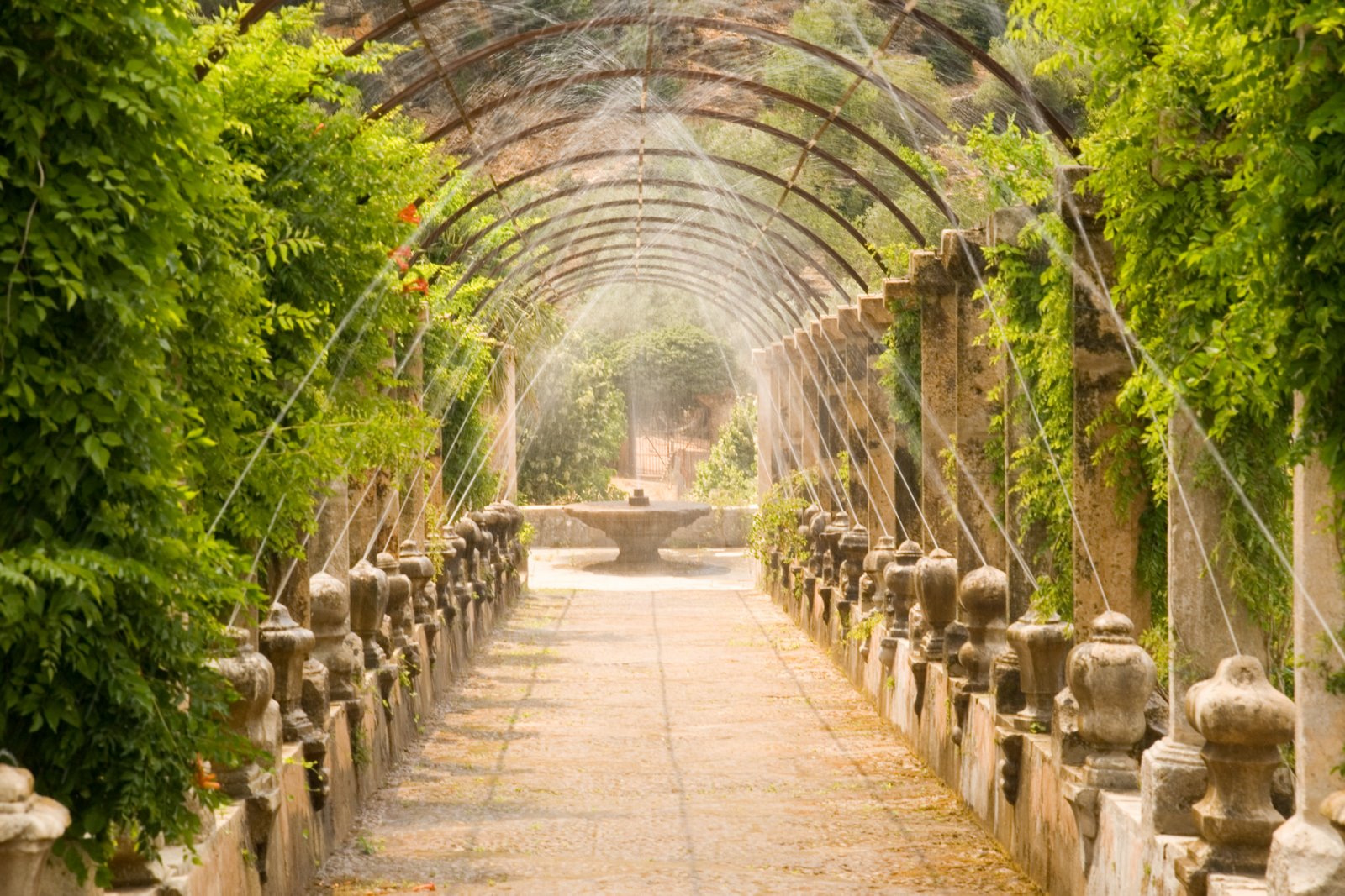 На солнечном острове Майорка, у подножия гор Сьерра де Трамунтана (Sierra de Tramuntana), близ местечка Буньола (Bunyola) расположилась усадьба Альфабия (Alfàbia). Благодаря горам, защищающим усадьбу от холодных северных ветров и наличию многочисленных источников воды, сады окружающие усадьбу поражают путешественников изобилием своей растительности.