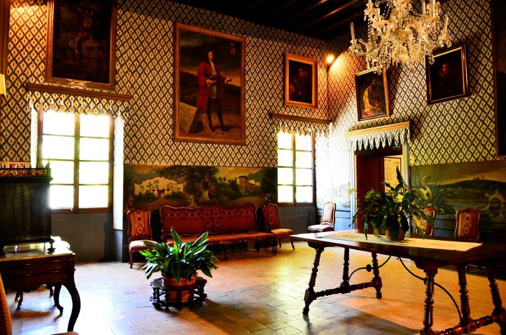 Обстановка дома не просто богатая, а изысканная! Одна из комнат, где находится библиотека, украшена голландскими гобеленами XVI века. Другие комнаты украшены многочисленными гравюрами, картинами и имеют тканевое покрытие стен. Дом с течением времени оставил в себе часть от каждой из эпох, которую он прожил, и, тем не менее, здесь сочетается поразительное равновесие разных культур и времен. Эволюция усадьбы Альфабия представляет модель сохранения и уважения прошлого вместе с развитием и привнесением новых элементов.