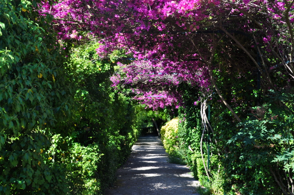 В конце аллеи находится смотровая площадка, с которой открывается чудесный вид на окружающие усадьбу, горы, оливковые плантации, усадьбу и окружающий ее нижний сад.