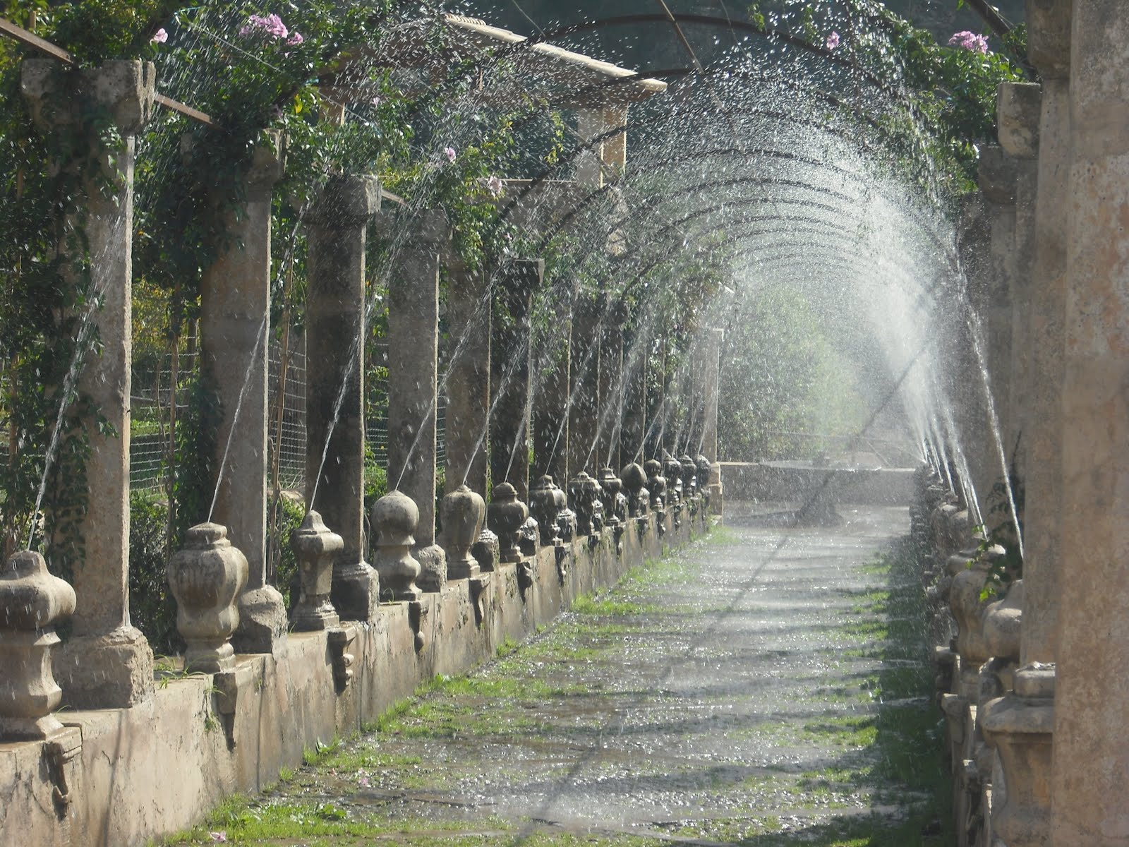 Далее путь проходит через особую аллею с 32 колонами и 24 фонтанами, расположенными по всей длине аллеи и поражающие игрой многочисленных струй воды. Фонтаны аллеи включаются нажатием на кнопку, расположенную на одной из колонн, так что каждый желающий может включить фонтаны и устроить освежающий душ своим спутникам. Будьте внимательны ;-) !