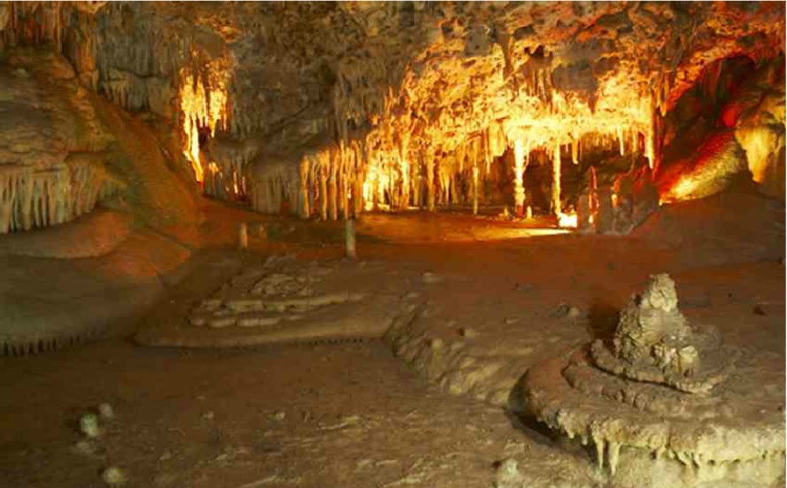 Кальдентей проявил большой интерес к открытым им пещерам, стремясь показать красоту подземного мира острова, он внедрил передовые по тем временам технологические инновации: освещение пещер художественной — электрической подсветкой. Электричество для этого вырабатывалось при помощи водяной мельницы с установленной турбиной. Полученного электричества хватало на освещение пещеры в течение 16 часов без перерыва.