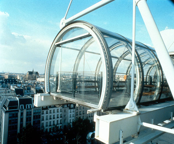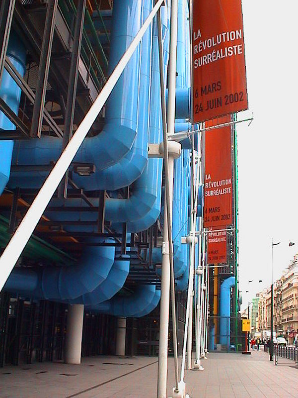 При проектировании здания, которое изначально планировали построить в стиле хай-тек, главной целью было обеспечить его максимальную функциональность. Чтобы освободить внутренние площади, отводимые под выставочные залы, архитекторы приняли смелое решение вынести все коммуникационные узлы на фасад. Так что имейте в виду, что хаотичное нагромождение разноцветных труб – это не просто эксцентричная задумка дизайнеров, а рабочие системы жизнеобеспечения музея. Трубы синего цвета содержат в себе воздуховоды, зеленого – систему водоснабжения, в желтые трубы зашиты электрические кабели, в красные – лифтовые механизмы, а также системы противопожарной безопасности и сигнализация.