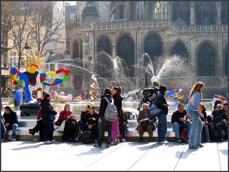 Одна из особенностей Центра Помпиду состоит в том, что он призван, скорее, производить культуру, чем просто демонстрировать ее. У здания музея отсутствует монументальный вход, что было немыслимо в то время. Зато напротив расположена огромная пешеходная площадь, пропитанная классическим парижским духом – здесь туристов развлекают мимы, жонглеры, музыканты, клоуны. В этом то и заключается замысел архитекторов – музейное искусство и уличное тут не имеет четких границ, они перетекают друг в друга, объединяются, формируя неповторимый культурный синтез современности. Еще один способ прочувствовать бобуровскую жизнь – посетить расположенную на площади кофейню Beaubourg, спроектированную известным архитектором К. де Портзампарком.