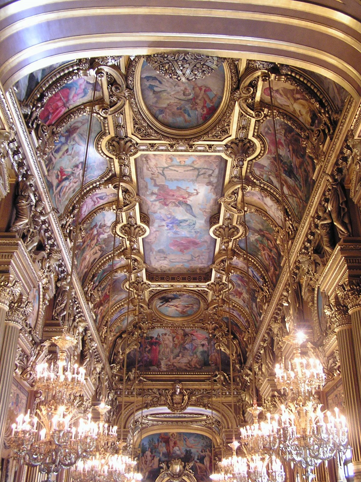Салоны той поры были увешаны различными зеркалами и золотыми рамами, и все это на фоне разноцветных бархатных обивок. В зажиточных домах наблюдалась настоящая мешанина стилей. Гостиная могла быть отделана в стиле Людовика XV, спальня – в духе Людовика XVI, а столовая могла отражать все каноны эпохи Ренессанса. В общем, единство и чистота линий были явлениями крайне редкими. Позже у этого эстетического хаоса даже появилось название – стиль Второй Империи. Здание, предложенное Шарлем Гранье, полностью соответствовало этому стилю.
