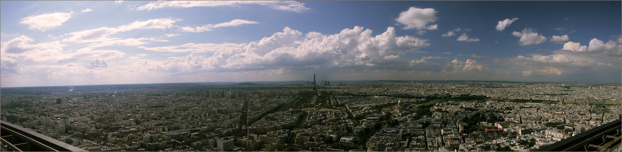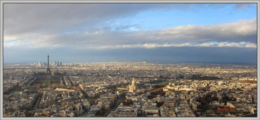 Но и сверху тоже иначе. У башни Эйфеля три уровня. С каждого последующего обзор лучше. Есть небольшой ресторанчик, квартира-музей Густава Эйфеля, в которую нельзя попасть. Монпарнас подошел к вопросу с большим размахом – места достаточно. На 56 этаже можно гулять несколько часов. Тут и пара кафе, в которых уставшие немцы коротают час другой за бокалом французского вина, и информационные стенды (самые интересные из которых, как не обидно, только на французском языке), и бесплатные туалеты (место на заметку!) и специальные монокуляры или бинокуляры, бросив в которые монетку в 1 евро можно вблизи рассмотреть и Дом Инвалидов, и Лувр и много чего еще… Там же расположена мини галерея картин, иллюстрирующих историю Парижа. Здесь можно увидеть копии уникальных карт Парижа 110 летней давности и сравнить их с городом, раскинувшимся за окном.