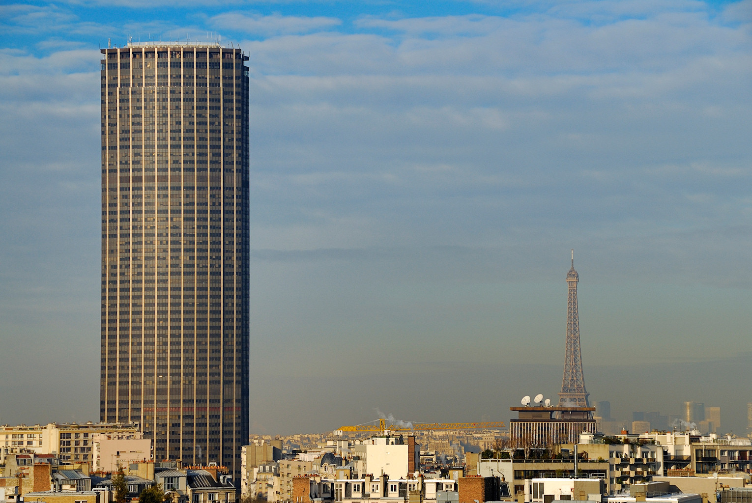 Башня Монпарнас (фр. Montparnasse) была сооружена в Париже по проекту архитекторов Бодуэна, Дюбюиссона, Лопеза, де Ойма и Арреча. Согласно проекта здание представляет собой этакую овальную сигару из дымчатого стекла в 59 этажей, каждый из которых имеет площадь порядка 2000 м2. При высоте в 209 метров башня еще на 70 метров уходит под землю, ее вес составляет 120 тыс.тонн.