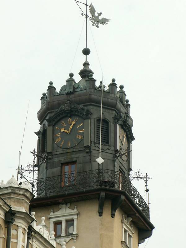 В центре традиционное для запада здание Ратуши. Первоначальная квадратная в плане готическая ратуша была построена после нашествия литовцев в 1349 году. Она была увенчана высокой восьмигранной башней. После многочисленных разрушений в XVI веке была восставлена в более удлинённой форме и украшена кирпичным аттиком.