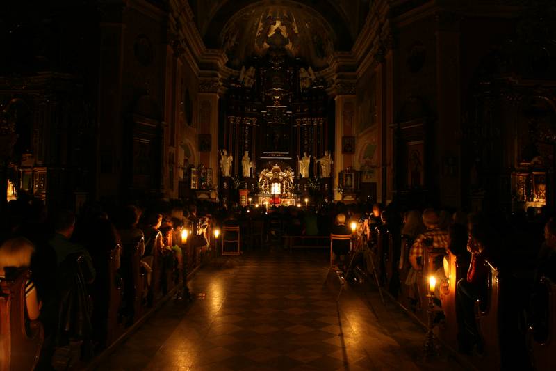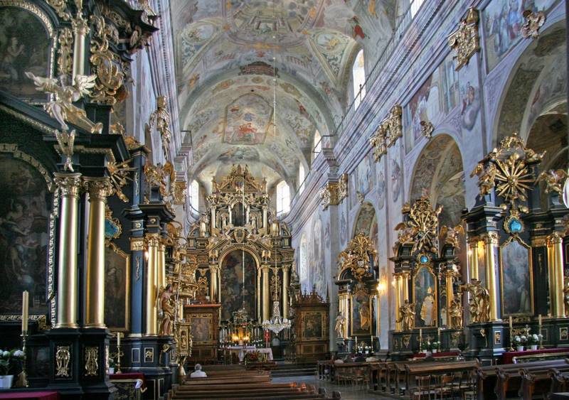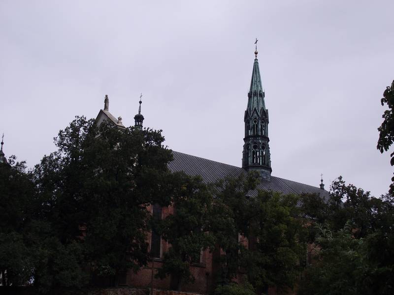 Зато кафедральный костел блистает во всем своем величии. Он был построен на месте первоначального романского собора, упоминаемого еще в 1148 году. Кроме своих циклопических размеров известен тем, что здесь хранится частица дерева Святого Креста, подаренная собору королем Владиславом Ягайло в награду за героизм сандомирских рыцарей в битве при Грюнвальде.