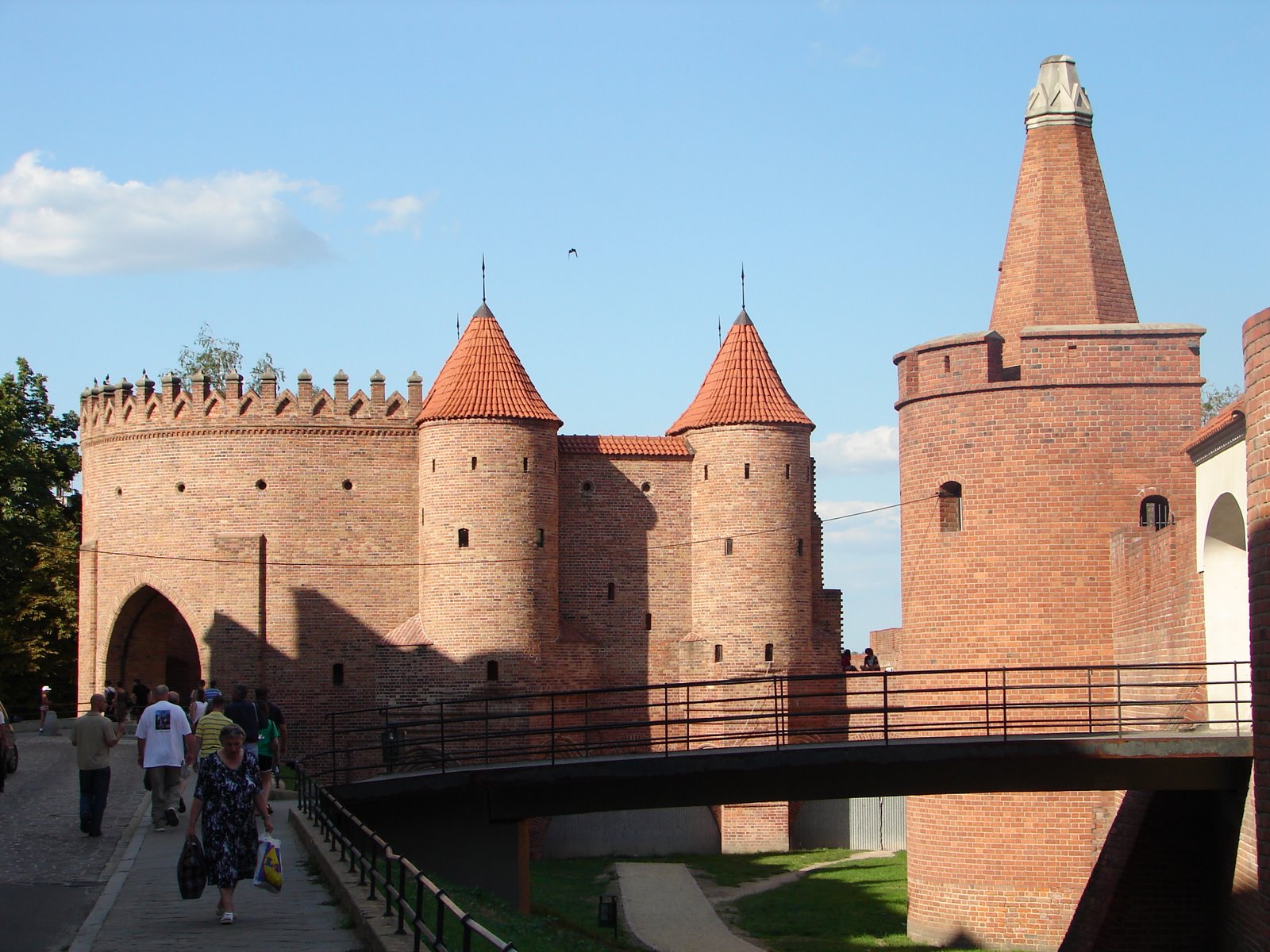 Еще одной достопримечательностью города является Барбакан – средневековые укрепленные ворота-бастион, к счастью, пережившие немецкую оккупацию. Единственный атрибут Барбакана, который не дошел до наших дней – это подъемные ворота, по которым в былые времена можно было попасть в город. От некогда глубокого рва осталось только небольшое углубление в земле, а крепостные ворота сейчас восстанавливаются, правда их реставрация проходит довольно медленно – стены из красного кирпича только чуть-чуть приподняты над поверхностью рва.