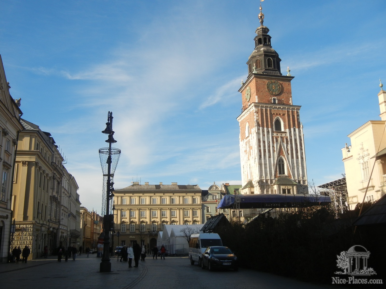 На Рыночной площади находится еще одна достопримечательность – Мариацкий костел, построенный в готическом стиле в виде двух соединяющихся между собой башен, украшенных коронами. Средневековый костел до сих пор является действующим религиозным центром, посещаемым не только туристами, но и священнослужителями и монахами со всей страны, а также краковскими прихожанами. В Мариацком костеле сохранился в первозданном виде старинный готический алтарь, один из самых больших в Европе. Размеры алтаря довольно внушительные – его ширина составляет 11 метров, а высота – 13 метров. Для создания алтаря использовалась древесина липы, а грандиозную работу по созданию алтаря еще в XV столетии выполнил искусный мастер из Нюрнберга по имени Вит Ствош.