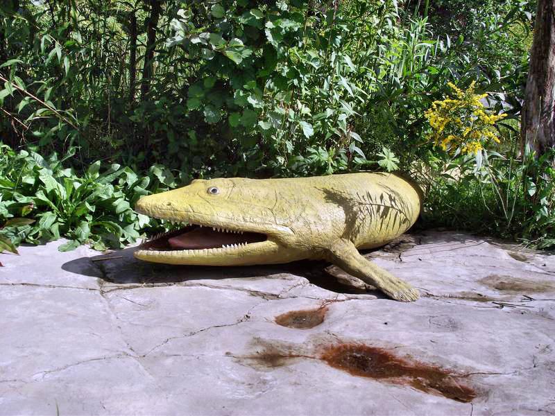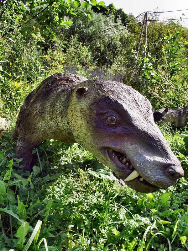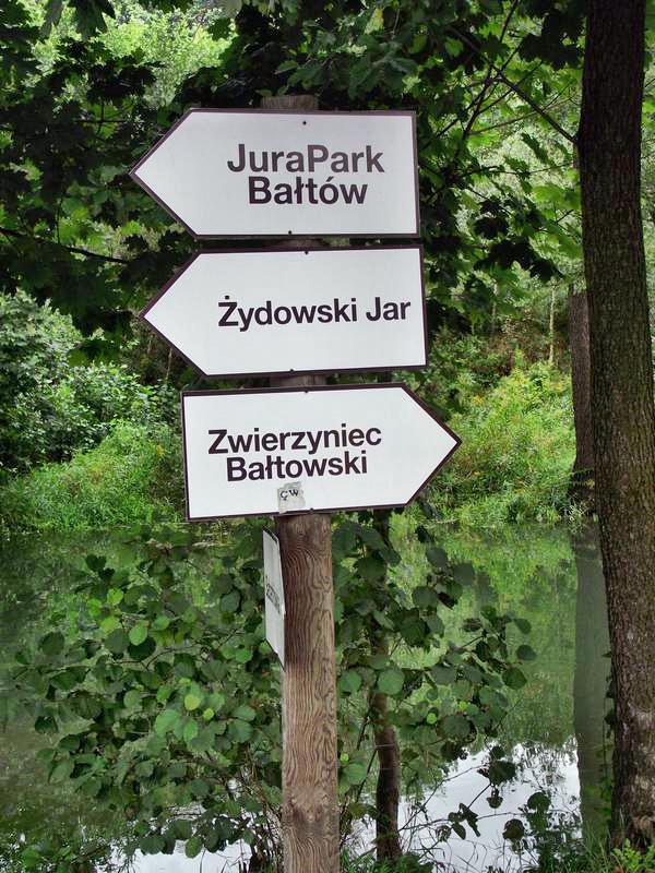 После такого жаркого приема необходимо и охладиться. Например, проплыть по реке на плоту. Однако разлившаяся вода затопила место посадки. Хорошо, что можно просто побродить по парку. Благо есть такой неподалеку в небольшой деревушке Балтув (Baltow). Хорошо все-таки пройтись по тихим тенистым дорожкам, насладиться мелодичным журчанием ручейка. А это, что еще за наглая звериная морда выглядывает из кустов? Гид, ускоряя свой ход, пытается пояснить, что несколько лет назад в окрестностях нашли следы динозавров. Видно не все они вымерли. И, судя по всему, прекрасно себя чувствуют. А чего еще надо? Ведь пища сама добровольно по дорожкам бегает.