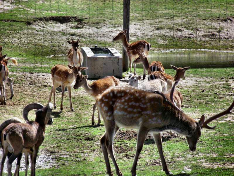 По склонам гор лениво бродят стада лам и альпаков. В тени деревьев укрылись олени Дыбовского. Стремительно пролетают мимо резвые лани. О чем-то задумались такие любопытные камерунские овцы. Нерадивые страусы оставили без присмотра свою кладку яиц. Гордые яки философским взглядом провожают надоедливых визитеров. И только какой-то вредный козел исподтишка показывает гостям язык.