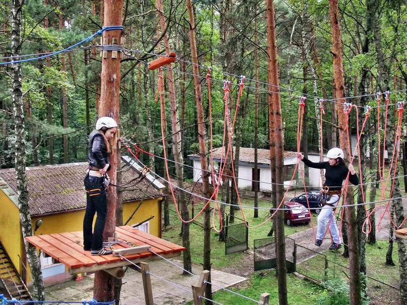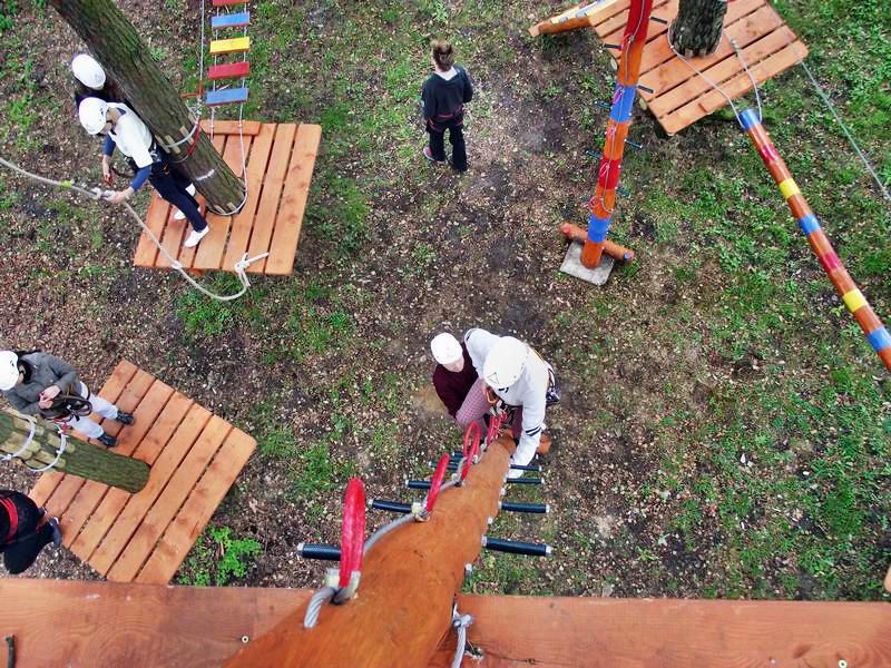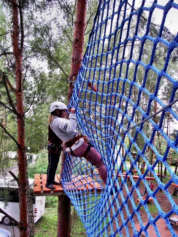 А вот сверху с высоты десятка метров жизнь как-то совершенно по-иному оценивается. Боязнь высоты пропадает буквально на первых же метрах. Чего уж там бояться, цепляться надо! Хоть и никудышная может быть эта твоя жизнь, а жалко. А сюрпризы буквально на каждом шагу. И инструкторы со своей страховкой куда-то подевались…Зато после успешного приземления, невольно вырывается, что все прекрасно! Солнышко веселее светит. Ласковый ветерок нежно обдувает разгоряченную голову. Теперь можно спокойно побродить по лесу поискать грибы. Или сходить на озеро, находящееся неподалеку. Похоже, это место отдыха большой популярностью пользуется.
