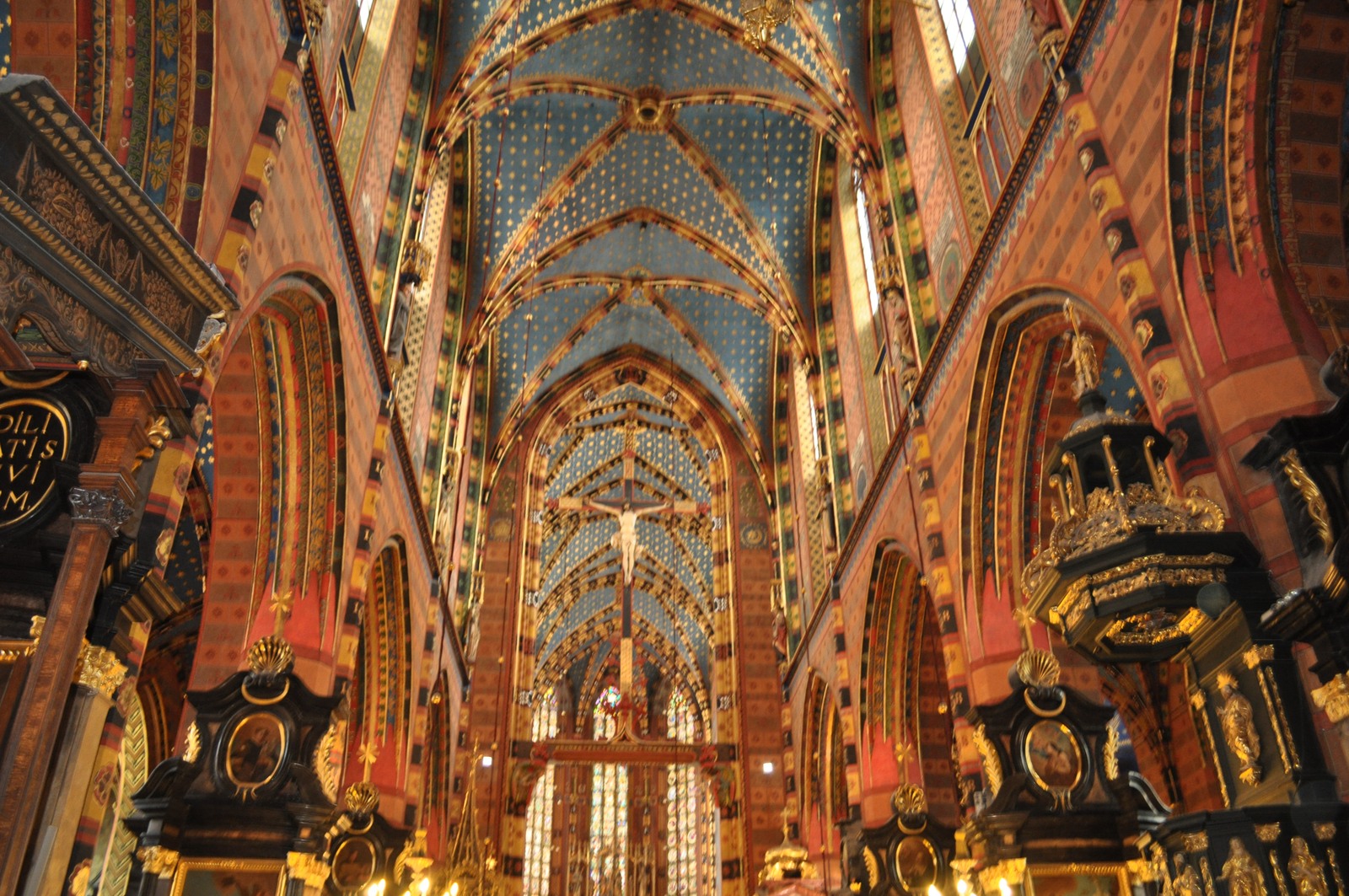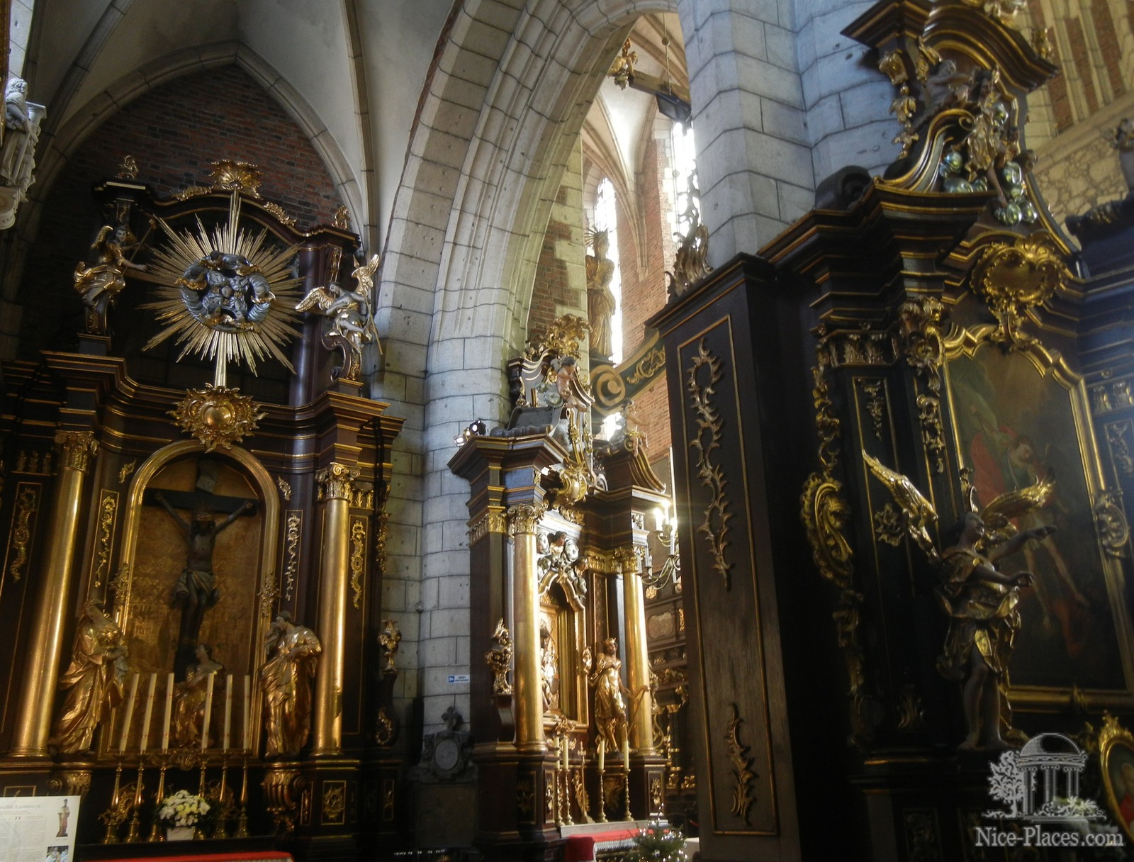 Главным сокровищем костела считается позднеготический деревянный алтарь, покрытый тонким слоем золота и словно купающийся в солнечных лучах, проходящих через яркие витражи. Его украшает барельеф, изображающий сцену Успения Богородицы. Над фигурами святых, каждая из которых сделана из целого ствола липового дерева, работал прославленный скульптор Вит Ствош. Алтарь создавался в период с 1477 по 1489 годы.