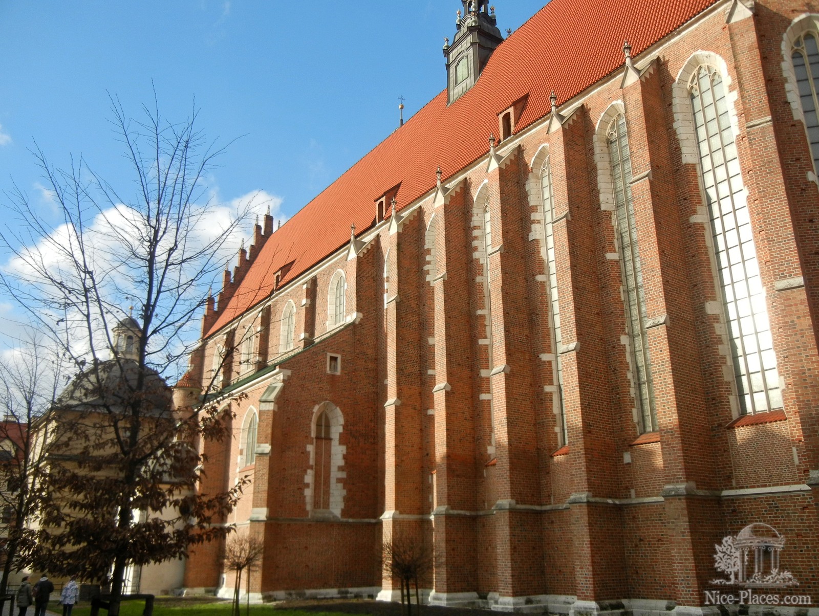 Чтобы посетить еще один городской храм, названный в честь Тела Господня, следует вернуться на Краковскую улицу и дойти до площади Вольницы. Именно там расположен огромный кирпичный храм с фронтоном, украшенным зубцами, характерными для готики, и высокой башней.