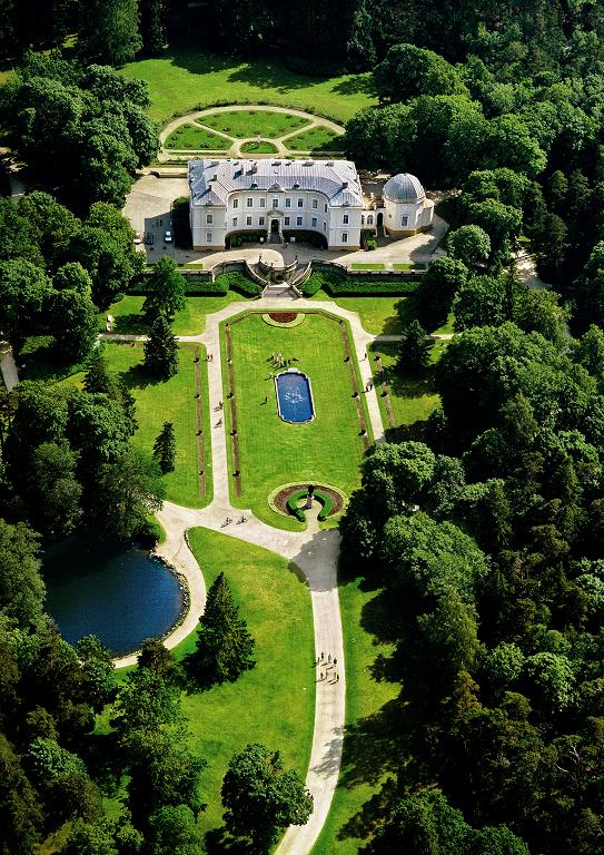 Вокруг дворца Тышкевичей на несколько километров раскинулся ботанический парк-лес с прогулочными дорожками и местами для отдыха. Этот парк, который, как мы уже упоминали, в 1893 году заложил Феликс Тышкевич, с самого начала был задуман как ботанический сад. Таким он остался и по сей день. Парк создавался руками и умами трех талантливых садовников и ботаников. Это парковый архитектор и ботаник француз Эдуард Франсуа Андре со своим сыном Рене Эдуардом Андре и бельгийский дендролог Буиссен де Кулон. В течении трех лет под их руководством и создавался парк.