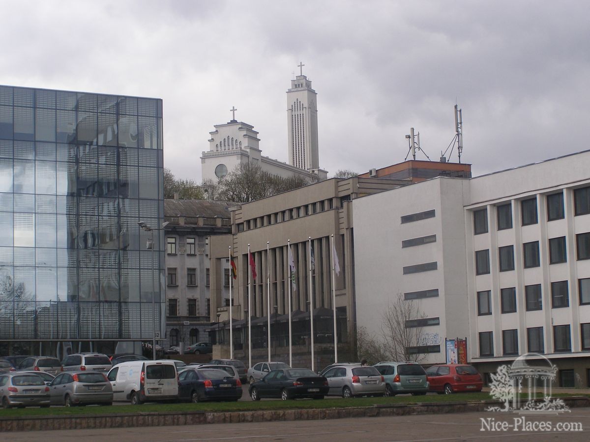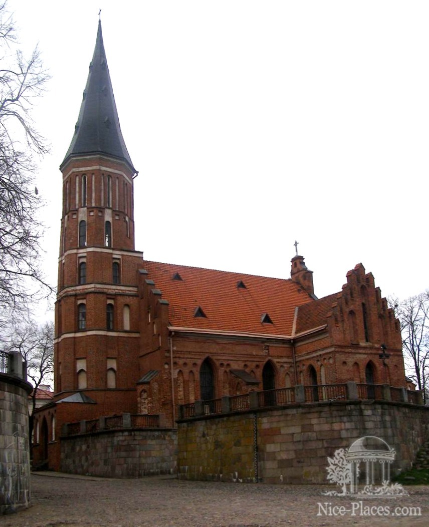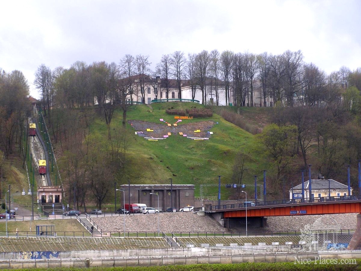 На набережной реки расположен еще один городской храм – костел Витовта. Говорят, что это первый храм, который появился в Каунасе, и основал его никто иной, как Витовт Великий (памятник ему можно увидеть на аллее Лайсвес). Этот литовский князь решил отблагодарить Святую Деву за свое спасение в одной из битв и возвел это готическое здание. Храм живописно отражается в быстрых водах Немана. Его самые красивые фотографии получаются с моста, который следует перейти, чтобы подняться на смотровую площадку на той стороне реки. Фуникулер работает с часу дня, в остальное время на гору можно подняться по ступенькам. Оттуда открывается великолепный вид на окрестности.