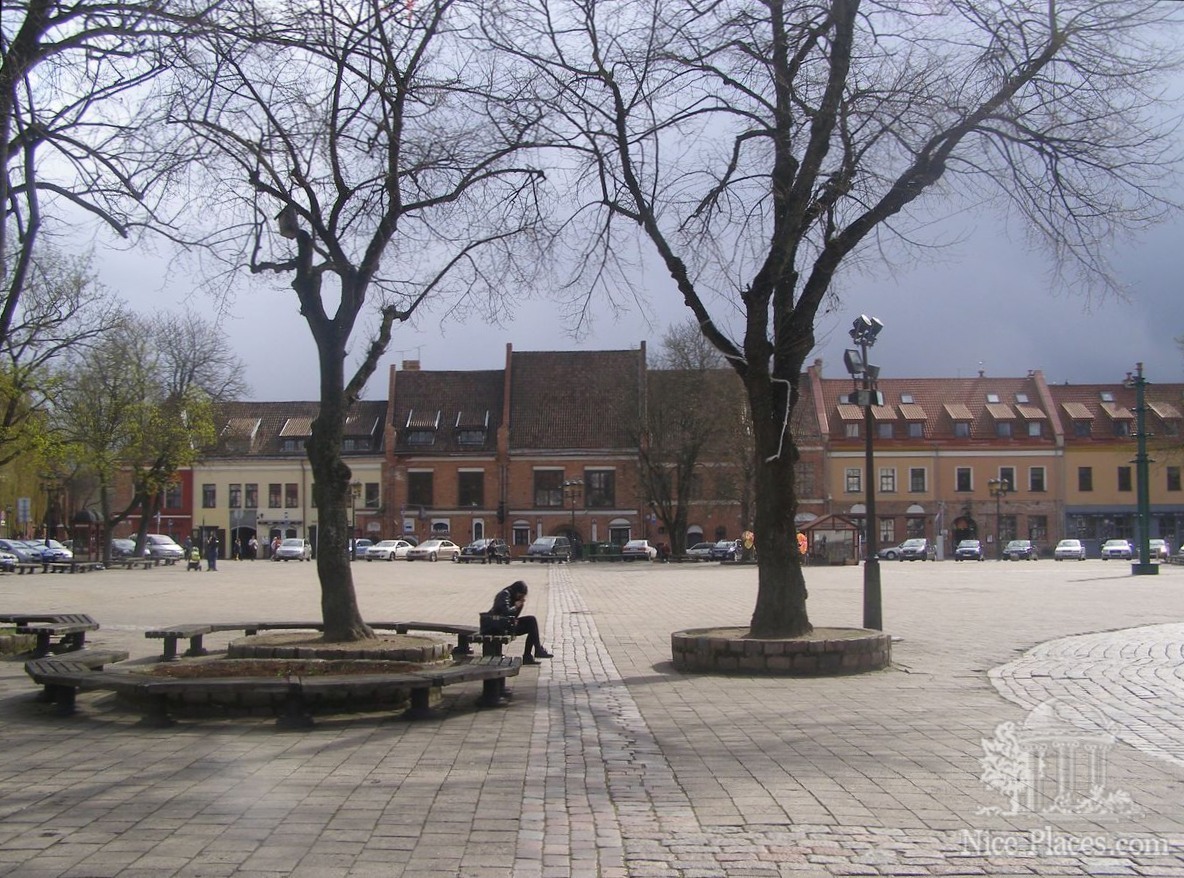 В центре площади на высоту 53 метров возносится стройное здание Ратуши. Смотровой площадки в ней нет, но побывать внутри можно: там работают туристический инфо центр и ЗАГС. Ратуша была построена в 1542 году, ее этажи использовались для разных целей: на первом долгое время была тюрьма для государственных преступников, на втором располагался суд. Увидеть это здание, словно стремящееся разрезать своим шпилем небо, стоит хотя бы потому, что это одна из трех ратуш, которые сохранились до наших дней в Литве.