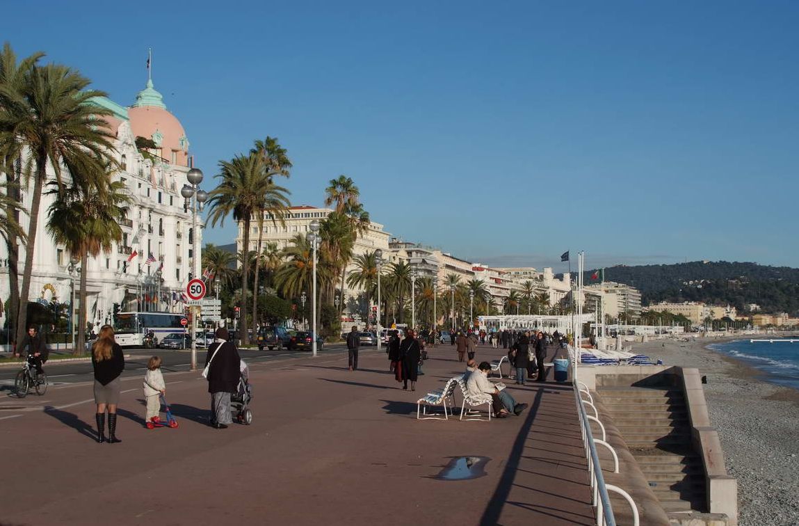 Знакомство с особенностями города можно начать с неторопливой прогулки по Английской набережной, которую французы называют «Променад Дез Англе». Она была открыта в 1844 году, и к настоящему времени стала символом Ниццы и Лазурного берега, а ее длина в настоящее время составляет шесть километров. Вдоль Английской набережной возвышаются роскошные виллы и дворцы, шикарные рестораны и гостиницы, бутики и художественные галереи, а посреди зеленых пальм красуется фасад одного из красивейших зданий Ниццы с колоннами и стеклянным куполом — отель Негреско.