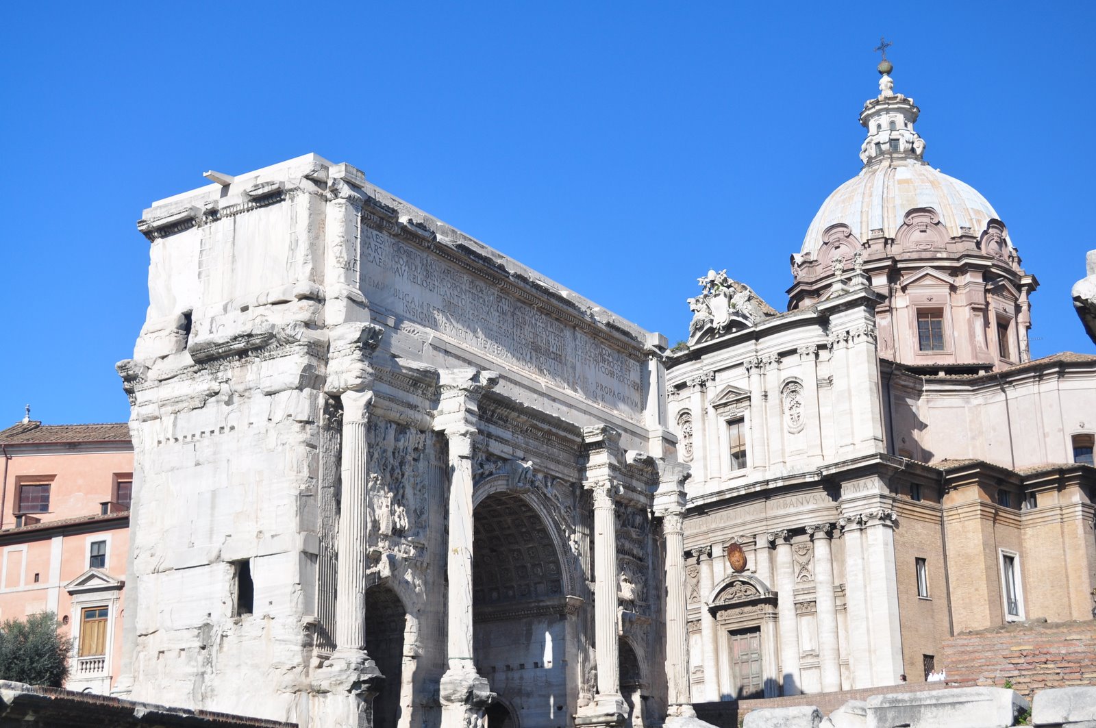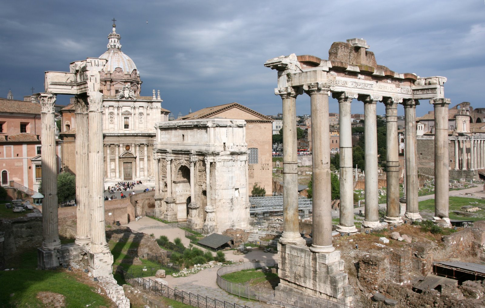 Путешествие в историю Древнего Рима можно начать с осмотра Римского Форума – площади, на которой принимались решения, важные не только для города, но и для всей империи. Здесь находятся руины некогда величественных храмов Сатурна, Зевса Олимпийского, Кастора и Поллукса, Весты, Венеры, Антония и Фаустины, Веспасиана. Прогуливаясь по древнему Форуму, словно совершаешь путешествие в прошлое, от каждого камня словно веет древностью. До наших дней сохранилась и Триумфальная Арка, построенная во времена правления римского императора Септимия Севера. С античных времен сохранилась и Колонна Траяна, возвышающаяся посреди одноименного форума. С античных времен сохранились и термы Диоклетиана и Каракаллы, а также храм Ромула. Каждая античная постройка, возрожденная к жизни археологами, напоминает о древней истории Рима, о его архитектурном облике во времена античности. Создается впечатление, что вот-вот здесь промелькнет тога сенатора или появится жрица-весталка.