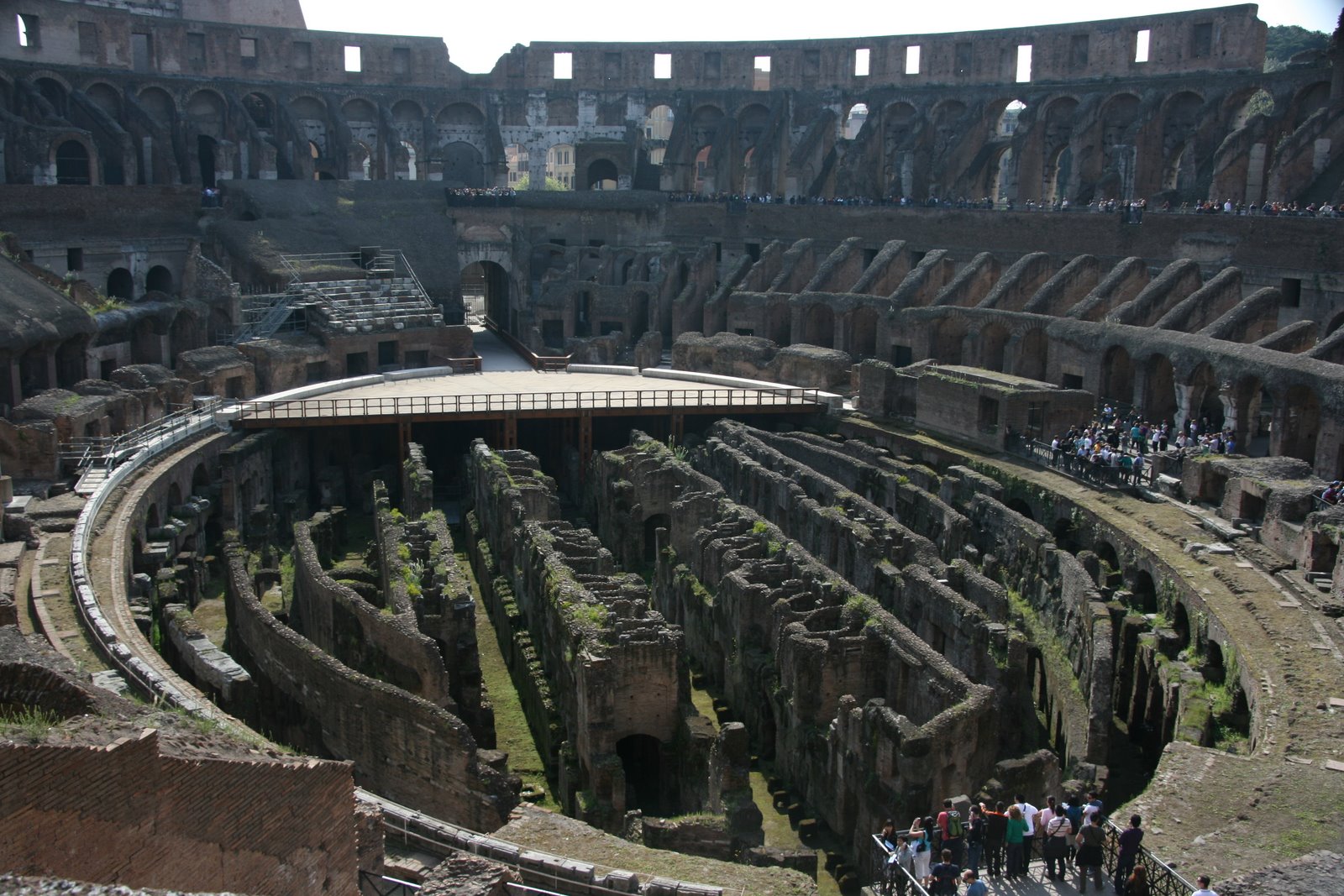 Колизей представляет собой постройку в виде эллипса. В центре здания расположена арена, предназначавшаяся для боев гладиаторов и травли животных. Места для зрителей располагались в 4 яруса. Распределялись места строго по социальной иерархии: чем выше положение – тем ниже место.