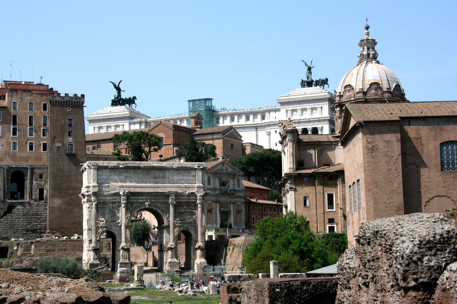 Пройдя вверх от Колизея по дороге славы мимо разрушенного храма Венеры и Ромы, вы подойдете к арке Тита. На северо-востоке от арки расположен Римский форум – политический, религиозный и торговый центр Древнего Рима. Однако в средневековье эта область была разграблена, а на месте Форума держали рогатый скот. И только в эпоху Ренессанса Форум получил новую жизнь. Главная улица форума – Священная дорога (via Sakra). Её считали священной, потому что она проходила мимо дома великого жреца к храму Юпитера, расположенному на Капитолийском холме.