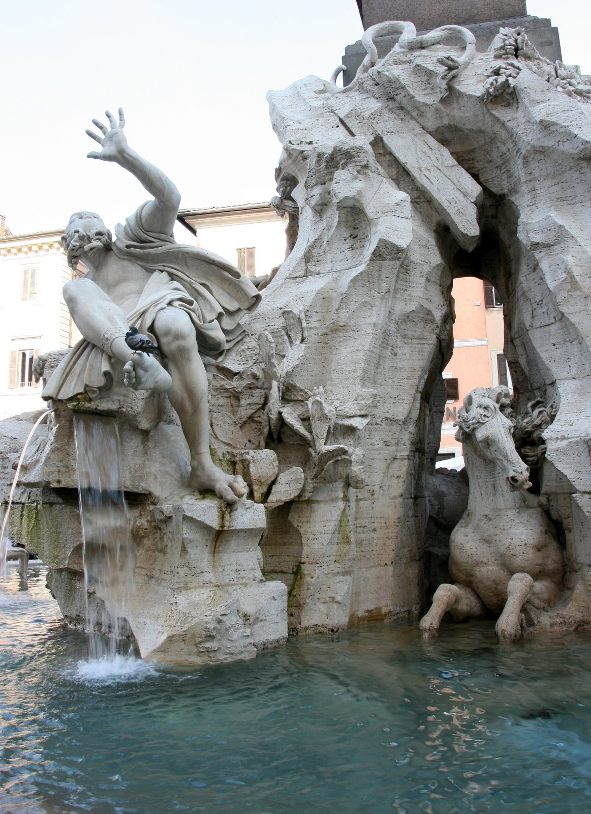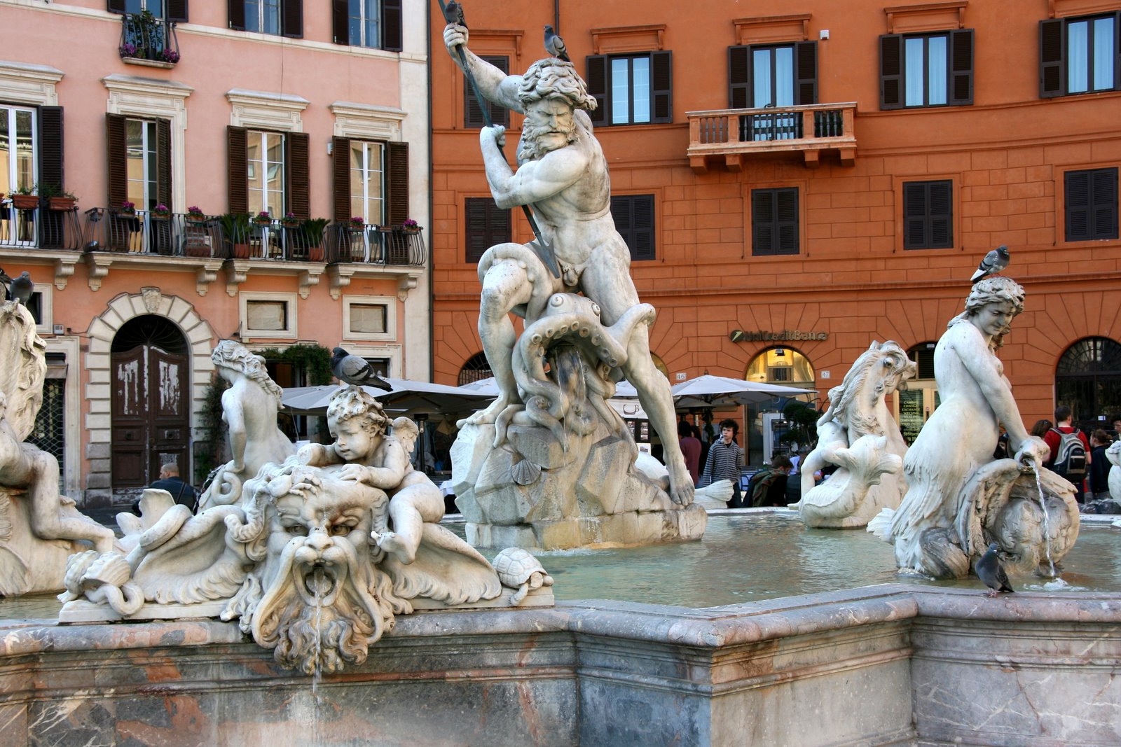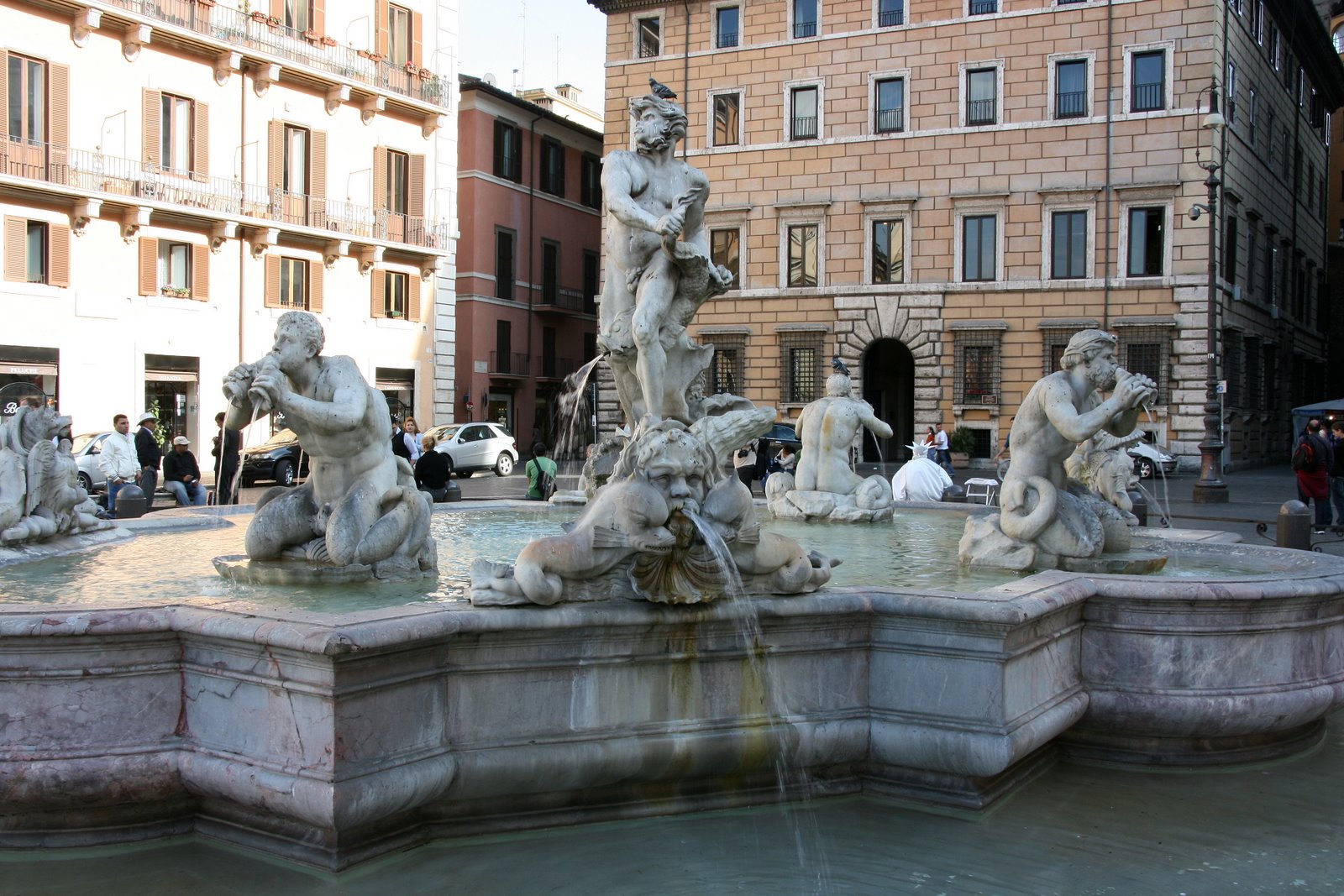 В трех кварталах от Пантеона расположена площадь Навона. В I веке до нашей эры на этом месте был стадион, определивший форму площади. В X веке, по приказу папы Иннокентия X, на площади был построен дворец — Палаццо Памфили. Рядом с дворцом была возведена церковь Сант-Аньезе-ин-Агоне, в честь святой Агнессы. С ней произошло невероятное: у 13-тилетней христианки, которую язычники выставили на поругание, мгновенно отросли волосы, скрыв наготу девушки. Голова святой хранится в реликварии в раннехристианской крипте, как и прах Иннокентия Х. Напротив церкви Сант-Аньезе-ин-Агоне расположен шедевр архитектора Джана-Лоренцо Бернини — «Фонтан Четырех Рек». Фонтан представляет собой египетский обелиск, расположенный в центре, и 4 фигуры вокруг него, которые символизируют главные реки 4 частей мира: Нил, Дунай, Ганг и Ла-Плата. По краям площади расположены еще два фонтана: фонтан Мавра, созданный по проекту Лоренцо Бернини, и фонтан Нептуна. Также на площади расположен Палаццо Браски — дворец папы Пия V, в котором сейчас находится музей Рима. Площадь Навона очень популярна, здесь всегда много гуляющих, художников с мольбертами, бродячих жонглеров и фокусников. Она выглядит прекрасно в любое время суток и в любую погоду: шедевры барокко рядом со столиками кафе, молодые люди с гитарами, продавцы воздушных шаров, голуби, журчание фонтанов и музыка, звучащая на площади постоянно.