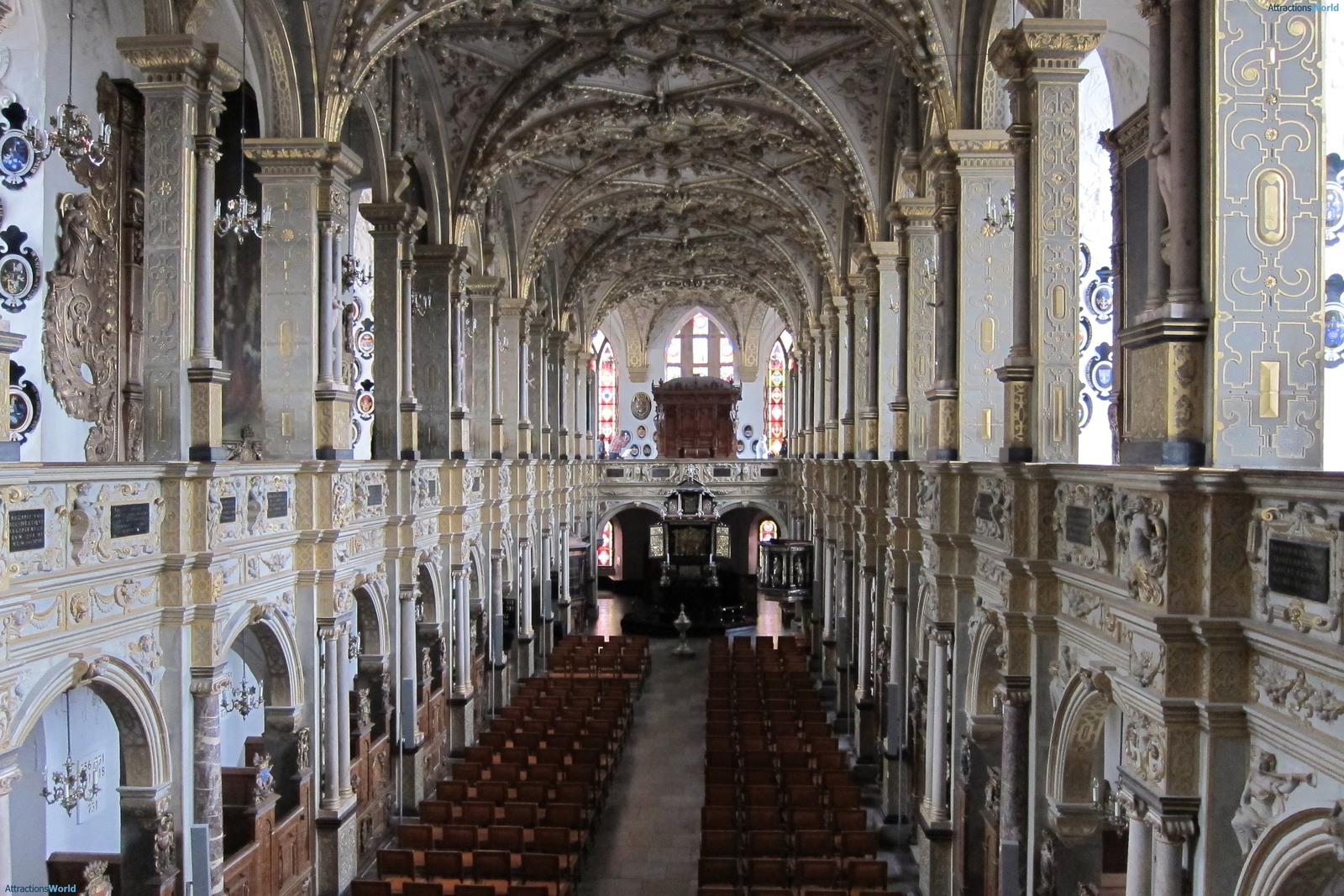 Отдельного внимания заслуживает часовня. В ней и сегодня проводят службы, а каждый четверг устраивается концерт органной музыки. Это не удивительно, ведь именно здесь находится один из самых старых органов мира. Его создал брауншвейгский мастер Компениус в 1610 году. Поразительно, но механизм данного музыкального инструмента, его мехи и деревянные трубы и по сей день в отличном состоянии, вследствие чего его звучание продолжает радовать любителей органной музыки.
