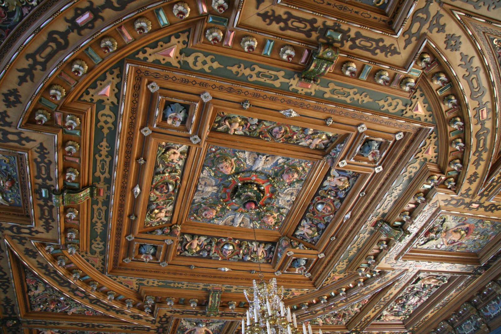 Своеобразным шедевром искусства являются потолки практически всех залов строения. Они украшены позолотой, росписью на религиозную тематику, всевозможной лепниной и деревянными барельефами, а в одном из залов (зал Астрономии) даже изображена карта звездного неба.