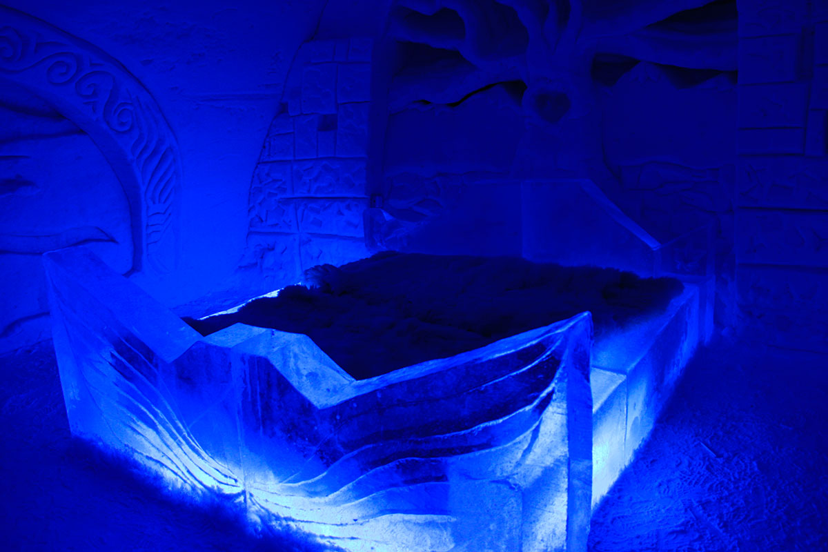 Идешь в свой номер, а за тобой наблюдают застывшие, созданные фантазией дизайнера мифические персонажи, за поворотом обнаруживается снежное деревце, притрушенное инеем, который мягко осыпается от твоего прикосновения. Деревце – это очень важный элемент интерьера: оно поддерживает свод. Снежок под ногами потрескивает, и кажется, что единственное живое существо в этом царстве льда и снега — только вы сами. Температура воздуха тут до конца сезона не поднимется выше нуля. Снежный замок не тает при температуре минус 5-6 градусов. Номера компактные, но не тесные. Всем постояльцам предлагают спать на кроватях, застеленных оленьими шкурами, в жарких больших спальниках, какими пользуются исследователи Арктики. Есть тут и специальный номер для новобрачных. Кстати, при отеле открыта часовня, сделанная из того же льда и снега, где можно объединить свои судьбы. Венчание в часовни на краю света – что может быть романтичнее? Некоторые пары приезжают в Кеми именно за такими впечатлениями.
