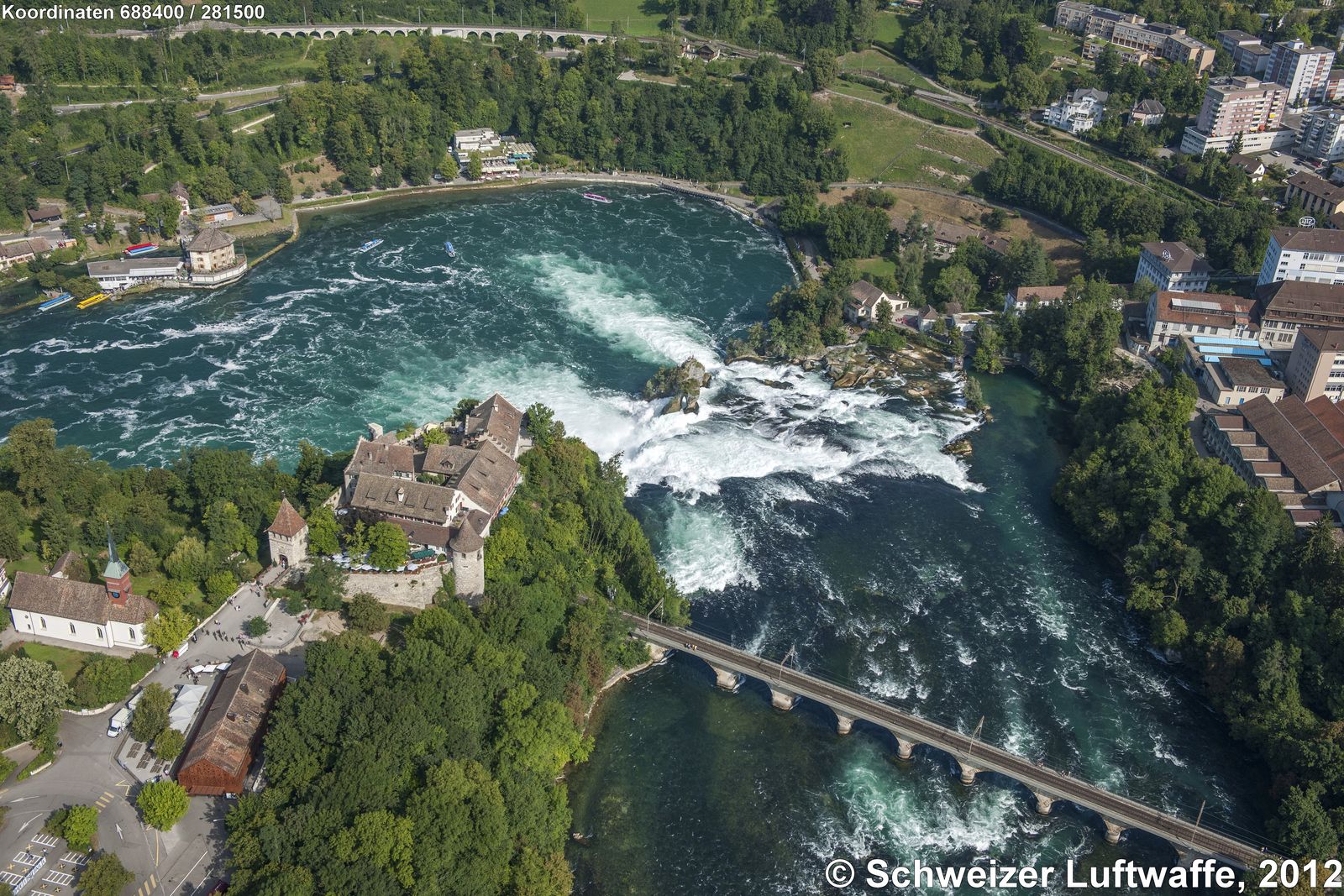 Богатая, чистая и чрезвычайно ухоженная Швейцария во все времена была одним из самых привлекательных туристических направлений в Западной Европе. Кроме знаменитых на весь мир горнолыжных курортов, эта альпийская страна притягивала людей своими захватывающими дух природными красотами.Символами страны уже давно стали покрытые шапками снега горные пики и альпийские долины, поросшие буйными травами с цветущими на них эдельвейсами. Одной из самых известных, природой созданных достопримечательностей Швейцарии, является Рейнский водопад (Rheinfall), находящийся практически на границе с Германией.