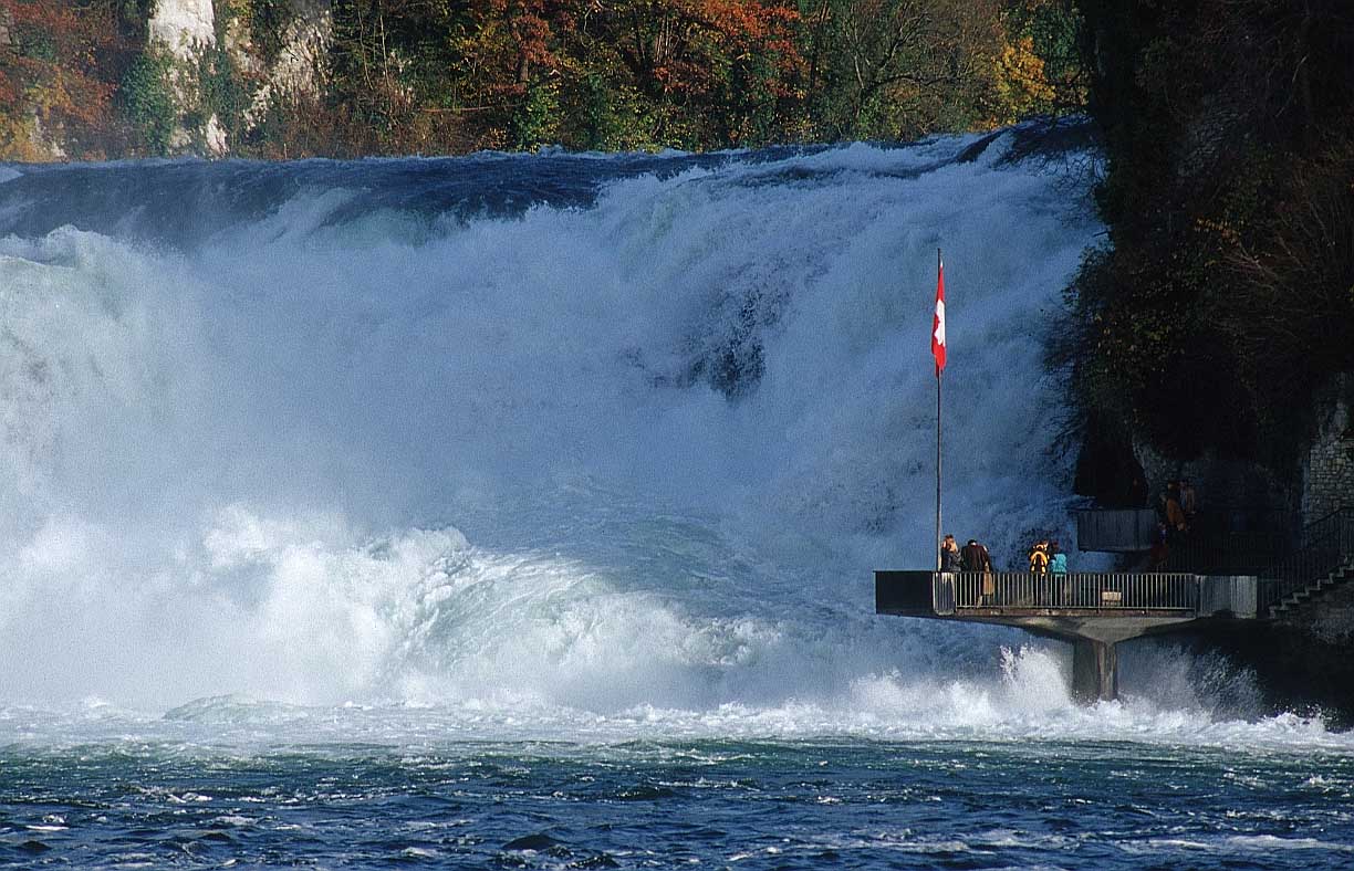 Богатая, чистая и чрезвычайно ухоженная Швейцария во все времена была одним из самых привлекательных туристических направлений в Западной Европе. Кроме знаменитых на весь мир горнолыжных курортов, эта альпийская страна притягивала людей своими захватывающими дух природными красотами.Символами страны уже давно стали покрытые шапками снега горные пики и альпийские долины, поросшие буйными травами с цветущими на них эдельвейсами. Одной из самых известных, природой созданных достопримечательностей Швейцарии, является Рейнский водопад (Rheinfall), находящийся практически на границе с Германией.