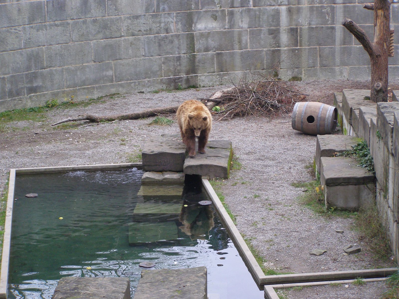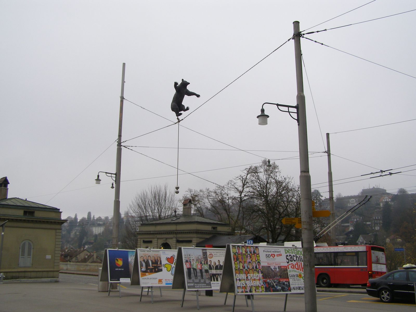 По легенде, будущая швейцарская столица получила свое имя от основателя города. Говорят, герцог Бертольд поклялся, что назовет свою крепость в честь первого животного, которого подстрелит на охоте. Таким незадачливым зверем оказался медведь. С тех пор в память о добыче князя в Берне содержат живых медведей. Раньше клетки с дикими зверями располагались на центральной площади города, а в XIX веке животных перевезли к мосту Нидеггбрюкке, где и поселили в специальных Медвежьих ямах. Открытые вольеры соединены переходами с рвом вдоль реки, поэтому мишки там часто греются на солнце. Увидеть их можно либо с набережной, нависающей надо рвом, либо с моста. Медведей можно кормить. Они часто выпрашивают у посетителей корм.