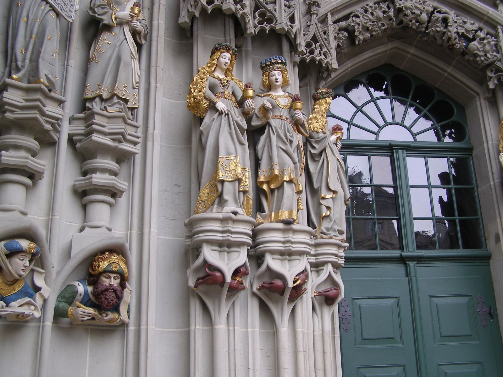 Исторический центр Берна в 1983 году был включен в Список наследия ЮНЕСКО. Доминантой города считается кафедральный собор Мюнстер, который начали строить в 1421 году и закончили только через полтора века. Он расположен на площади Мюнстерплац. Ранее на месте собора находилась небольшая церквушка святого Винсента, которая была полностью уничтожена пожаром 1405 года. Кстати, тогда выгорел почти весь Берн. Горожане, занимавшиеся восстановлением города, стали использовать в качестве строительного материала местный известняк зеленоватого цвета, поэтому домики под красными крышами сохраняют салатовый оттенок стен. Однако вернемся к собору. В 1528 году протестанты, враждебно настроенные к католической церкви, уничтожили все богатое убранство Мюнстера. Ценные произведения искусства были варварски раздроблены и закопаны на пустыре возле собора. Уже в наше время этот «схрон» был обнаружен археологами. Уцелели только статуи святых под сводами. Их просто не смогли достать. Из допротестантских времен до наших дней сохранился богатый портал, на котором скульптор Э. Кюнг изобразил сцену из Страшного суда. Здесь также хранится кафедра священника, датированная 1470 годом. Обратите внимание и на 20 ярких витражей, которые находятся в правом приделе.