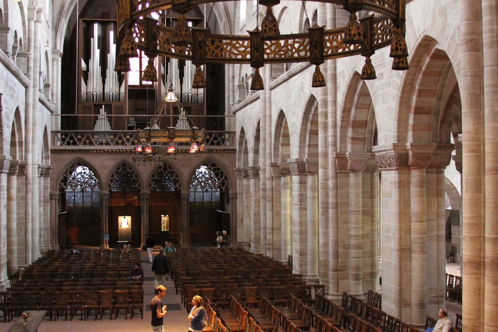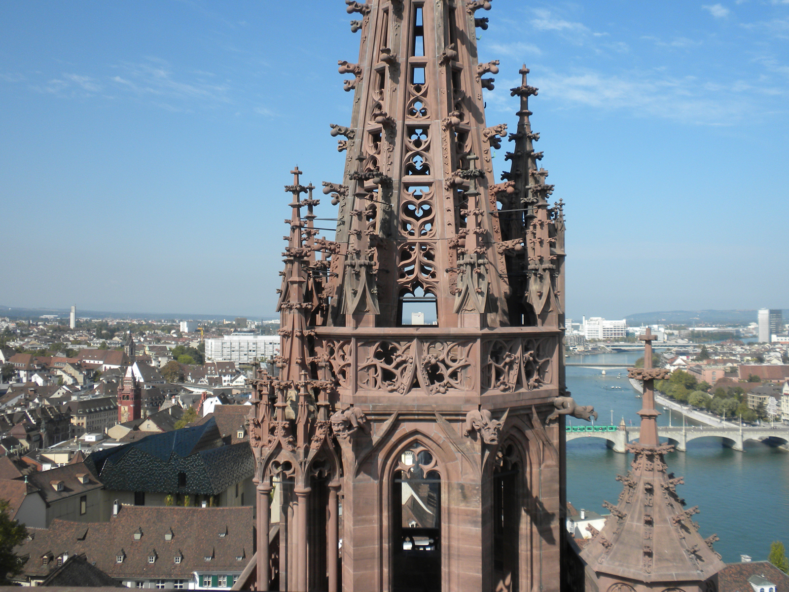 А вот и знаменитый кафедральный собор. Монументальное здание, башни, шпили, галерея, щедр на скульптуры фасад, разноцветные витражи, фрески и атмосфера ушедших веков во внутреннем убранстве. Построен еще в ХI веке, перестраивался. Был он еще краше, но многое с течением времени не сохранилось. В частности, пострадал храм от рук иконоборцев во время Реформации ХVI века. Тогда многие церкви Базеля были разрушены, разграблены или стали светскими зданиями. По узкой винтовой лестнице поднялись на башню, на высоту 62 метра. С высоты птичьего полета виден не только весь Базель, но и горы немецкого Шварцвальда, и французский Эльзас.