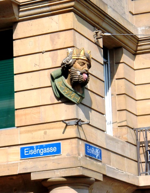 Главный, старейший мост называется «Mittlere Brücke» («Средний мост»). Кто этот бородатый человек на фасадном бюсте? Это «Lallekeenig» («король языка»), копия. Его оригинал с XVII столетия украшал ворота моста, пока в ХIХ веке их не разрушили. Вращая глазами и даже облизываясь, он приветствовал таким образом гостей Большого Базеля. Особенно, жителей Малого Базеля. В былые времена две половинки ныне единого города не ладили между собой и остро конкурировали.